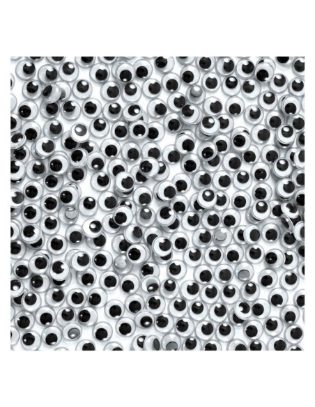 • WAT JE KRIJGT: 1000 zwart-witte wiebelogen in een bewaarpot. Alle ogen zijn 10 millimeter groot. Eenvoudig aan te brengen met lijm of een vergelijkbare lijmsoort.