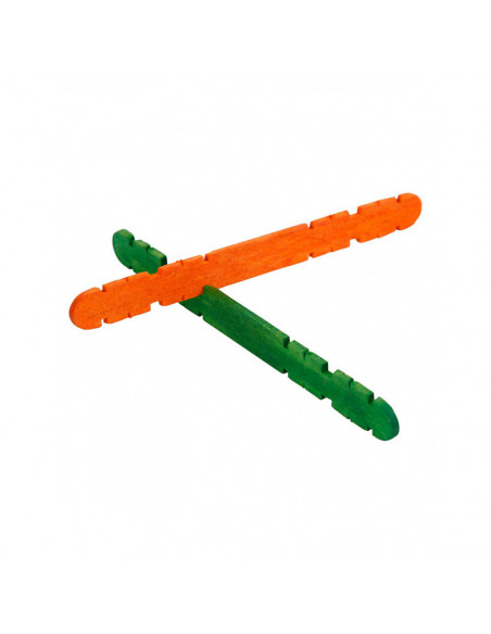 Als u van kleine bouwprojecten houdt, zijn onze stokjes perfect voor u. De stokjes zijn eenvoudig met een lijmpistool of transparante Multi Glue aan elkaar te bevestigen. Maar als u op de lijm wilt besparen, kunt u de stokjes aan elkaar bevestigen met ronde bamboe stokjes die speciaal zijn gemaakt voor de gaten in de houten stokjes..