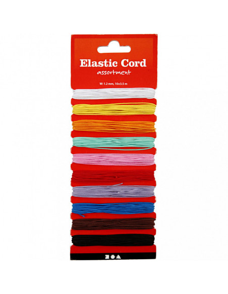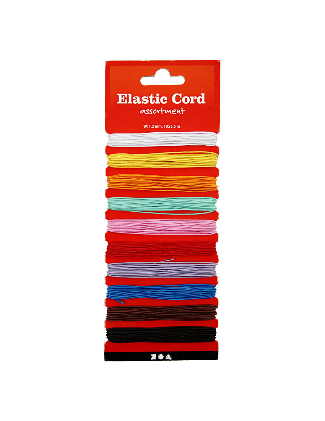 Rond, elastisch elastiek om te gebruiken tijdens het knutselen. Gebruik het elastiek bijvoorbeeld als basis om te rijgen. In de verpakking zitten 10 gekleurde elastieken met een lengte van 3,5 meter. Dikte: 1 mm.