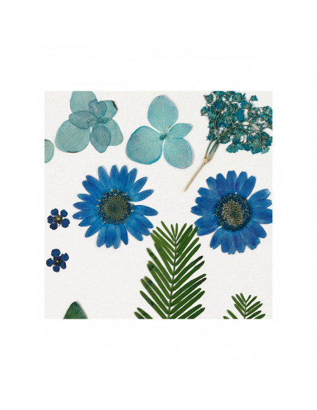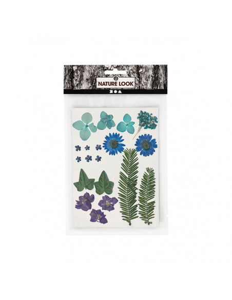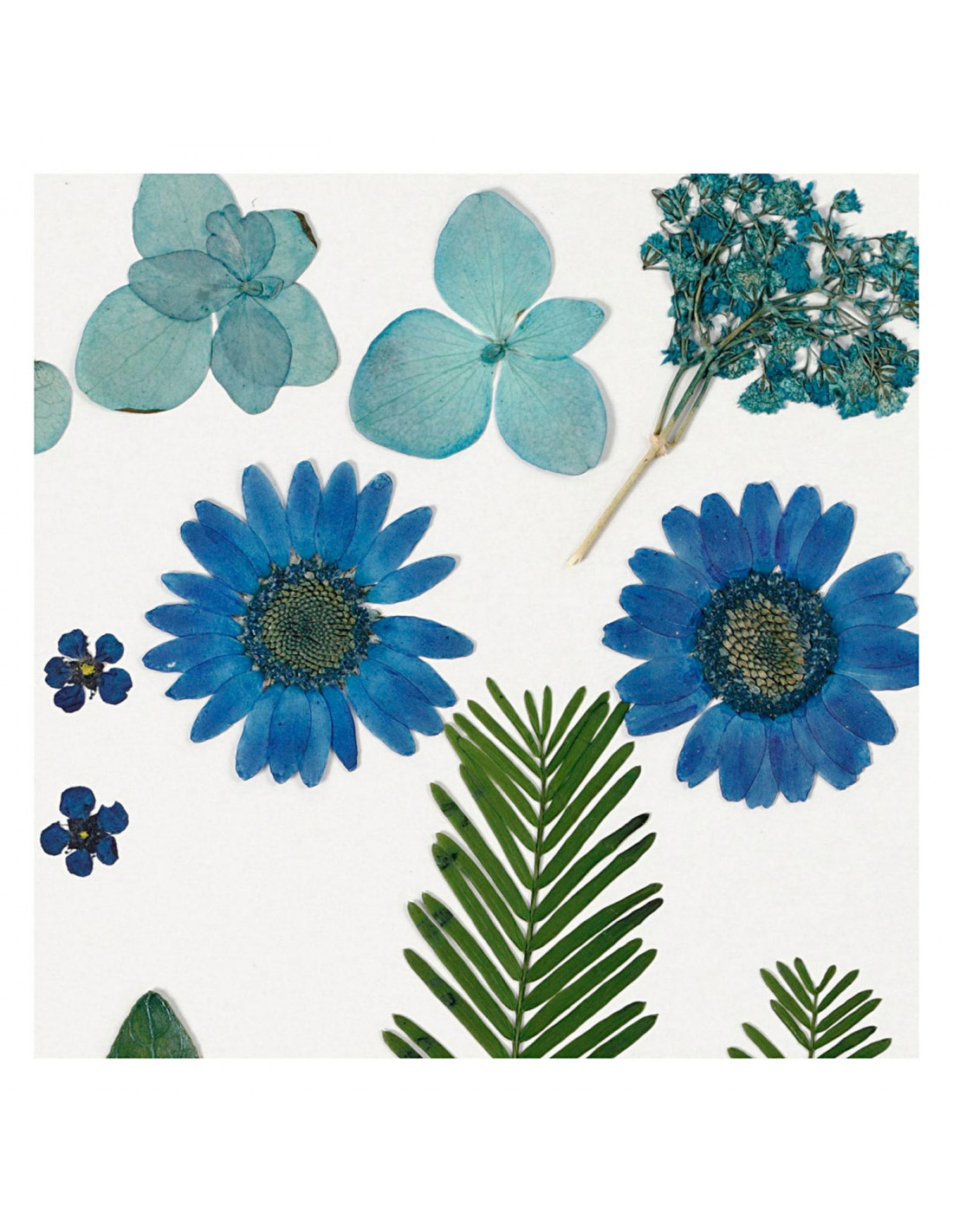 Gedroogde Bloemen en Bladeren Blauw 19dlg.