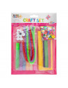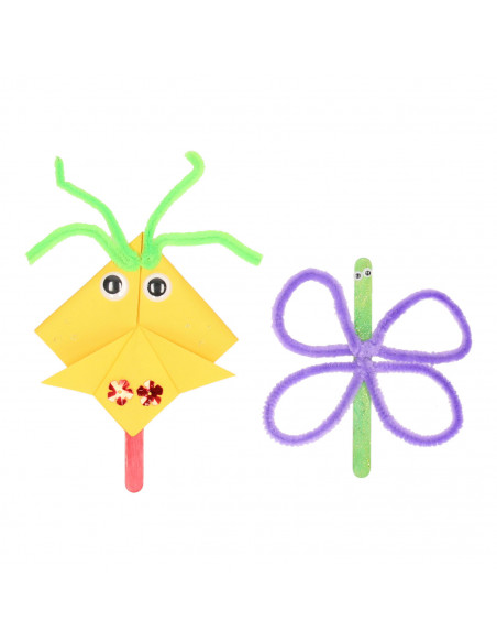 Inhoud van de knutselset: lijm, glitterlijm, oogjes in verschillende formaten en stervormige en bloemvormige en gewone glitterpailletten. Geschikt voor kinderen van 5 tot 10 jaar oud.