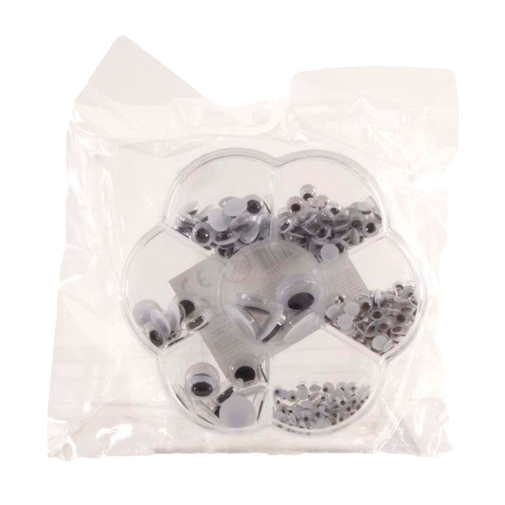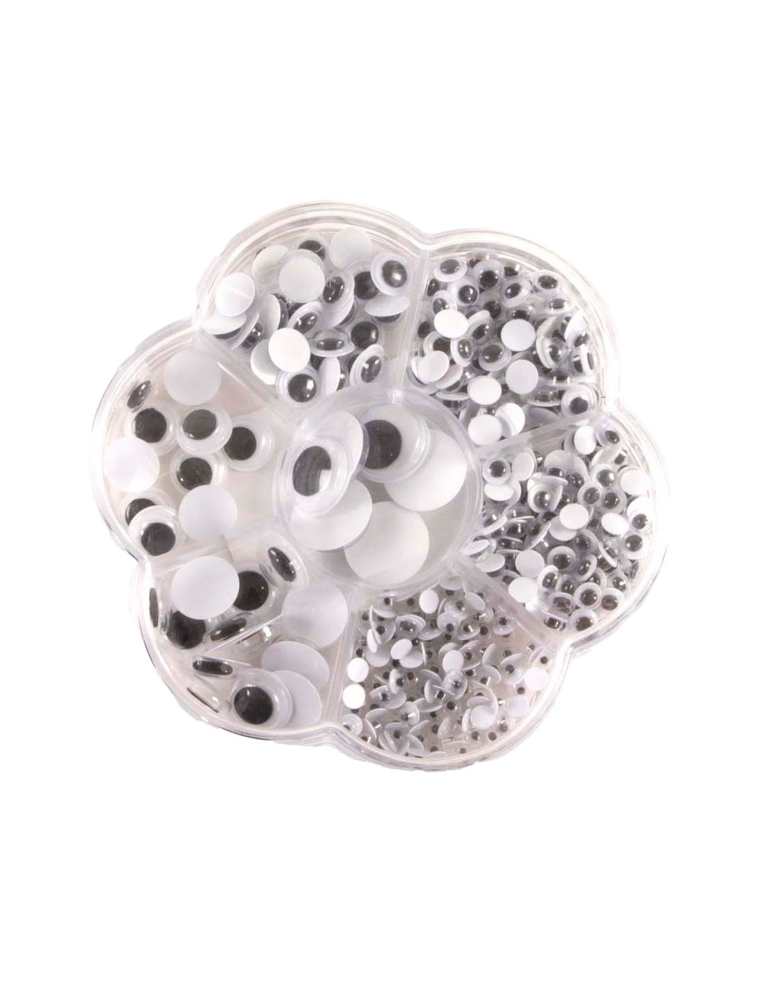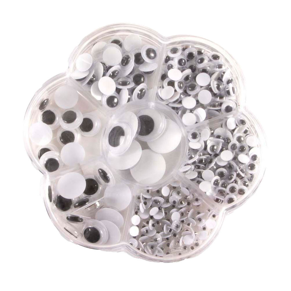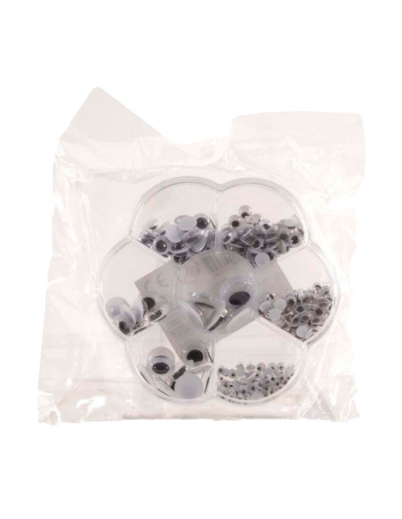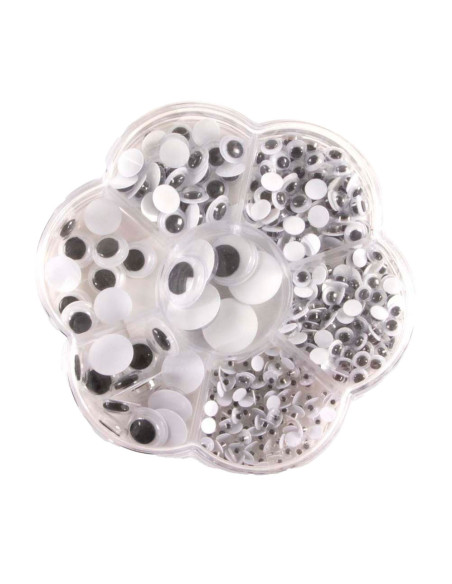 Dit handige opbergdoosje is ideaal voor creatieve knutselaars! Het doosje heeft 7 vakjes met in elk vakje een verschillende grootte wiebeloogjes. Leuk voor kunstwerkjes, tekeningen en nog veel meer!