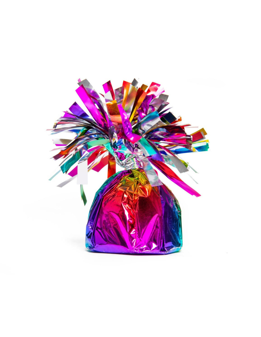Gewicht om heliumballonnen te verzwaren, verpakt in 170 gsm gekleurd folie. Het ballongewicht is 75 gram zwaar.