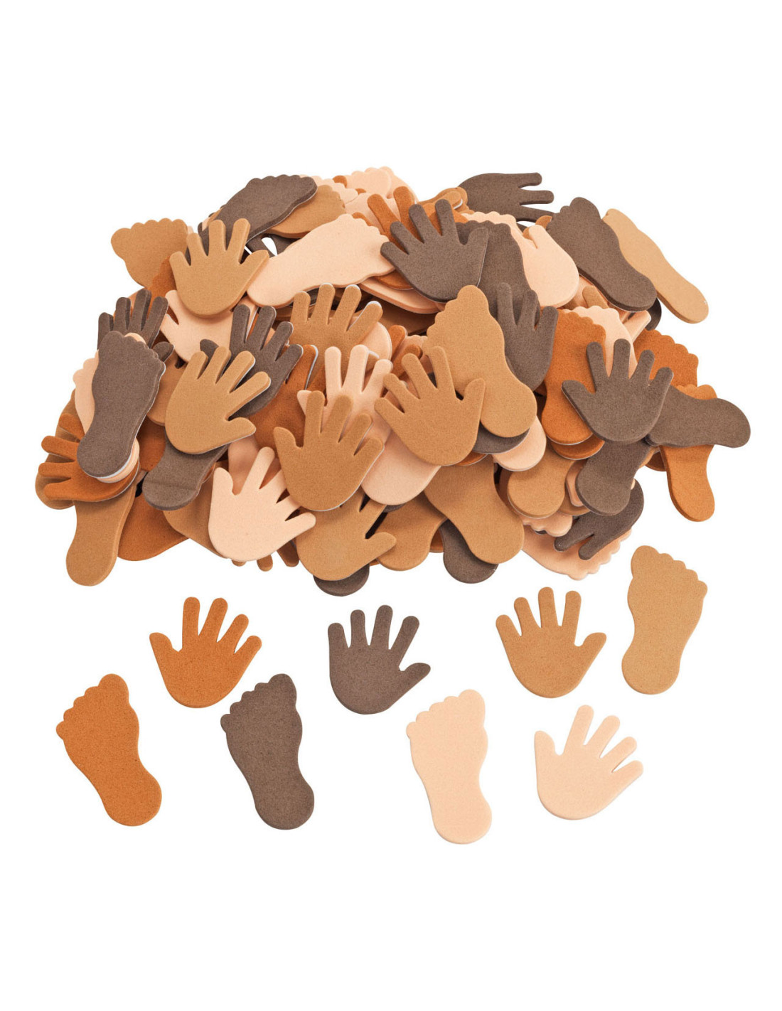 • KWALITEIT EN DUURZAAMHEID: Schuimhanden en -voeten zijn gemaakt met een sterke, zelfklevende achterkant. Schil de achterkant en bevestig ze op vlakke oppervlakken zoals papier, karton, posterboard en meer! Geen lijm of tape nodig!