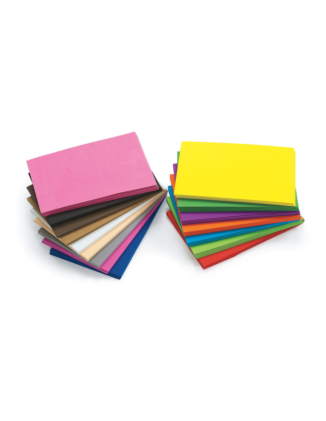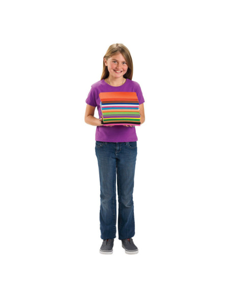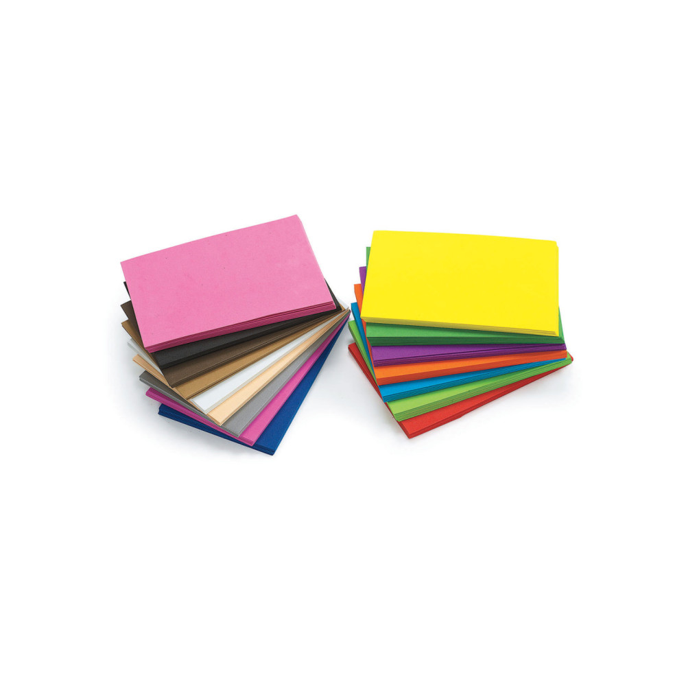 • 16 LEVENDIGE KLEUREN: 7 vellen van elk in zwart, blauw, groen, felroze, lichtblauw, limoengroen, oranje, paars, rood en geel, en 5 van elk in bruin, grijs, lichtroze, perzik, bruin en wit.