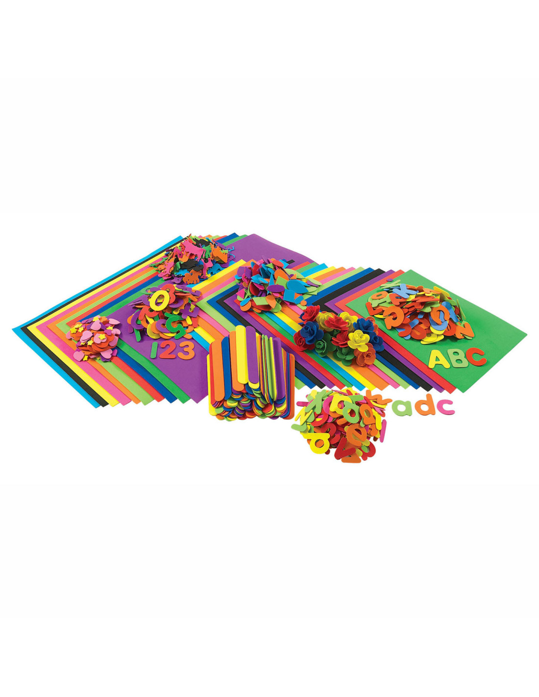 Alles wat je nodig hebt voor urenlange creativiteit met dit gebruiksvriendelijke klaslokaalpakket van foam. Kinderen kunnen prachtige kunstprojecten maken met de verscheidenheid aan vormen en vellen.