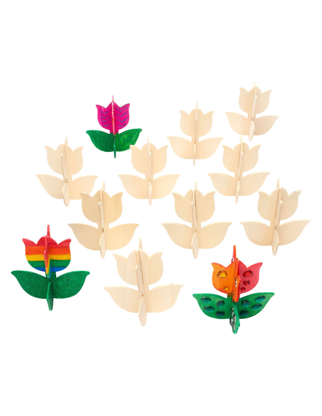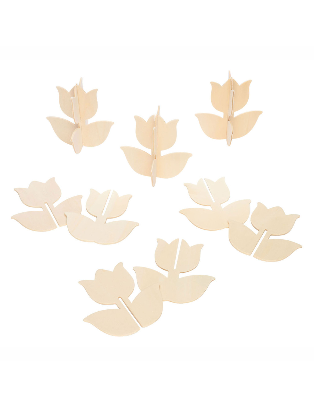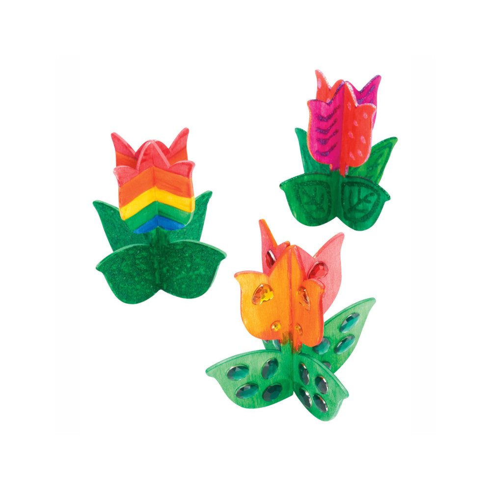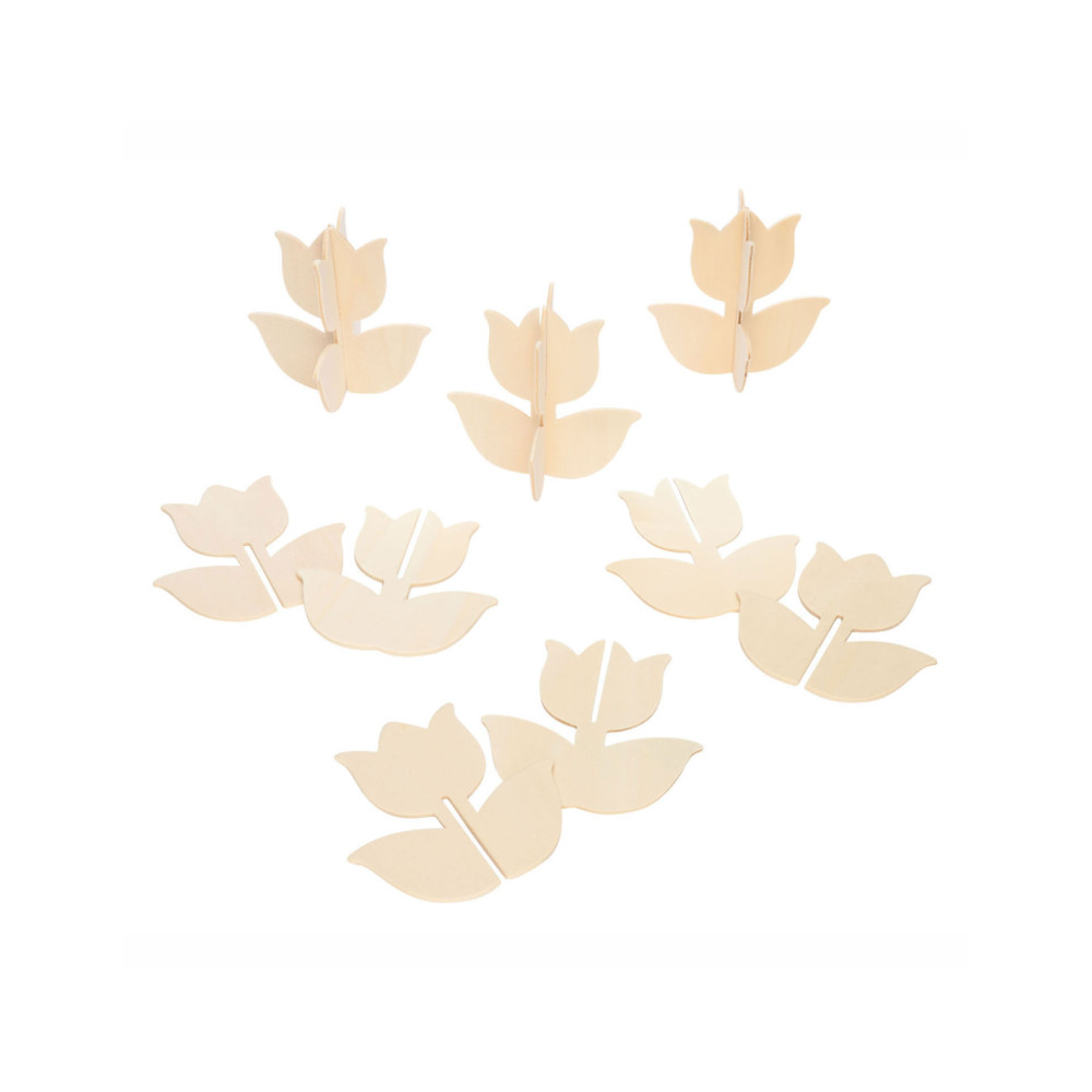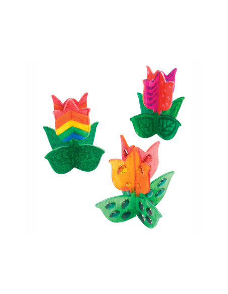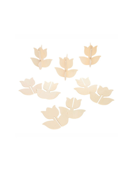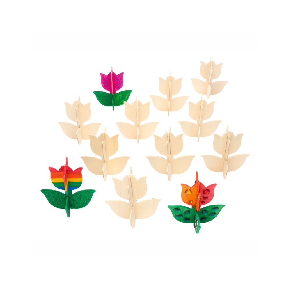 Inhoud: 12 eenvoudig te bouwen 3D houten tulpen van ongeveer 10 cm x 10 cm. Elke tulp heeft 2 stukken die in elkaar passen.
