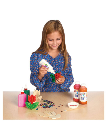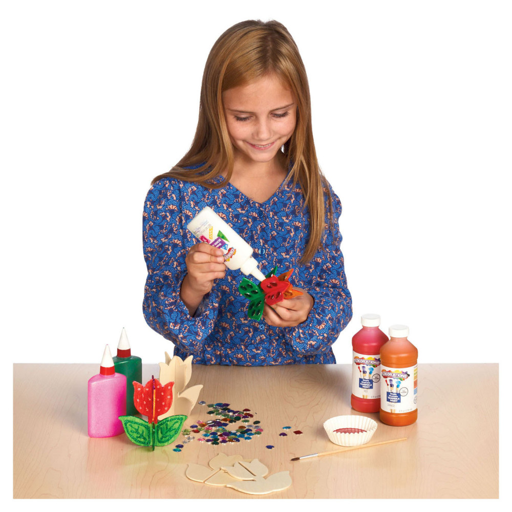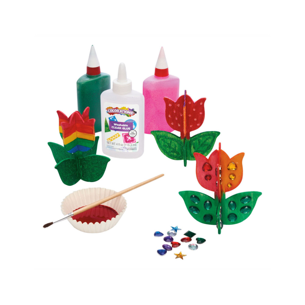Breng houten bloemen tot leven door ze te versieren met verf, stiften en meer! Een leuk en helder kunstproject voor elk moment van de dag.