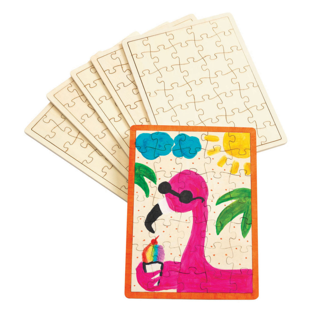 Set van 6 houten puzzels. De totale puzzelgrootte is elk 28 cm x 20,5 cm. 35 stukjes per puzzel. Klaar om te worden omgezet in kunstwerk.