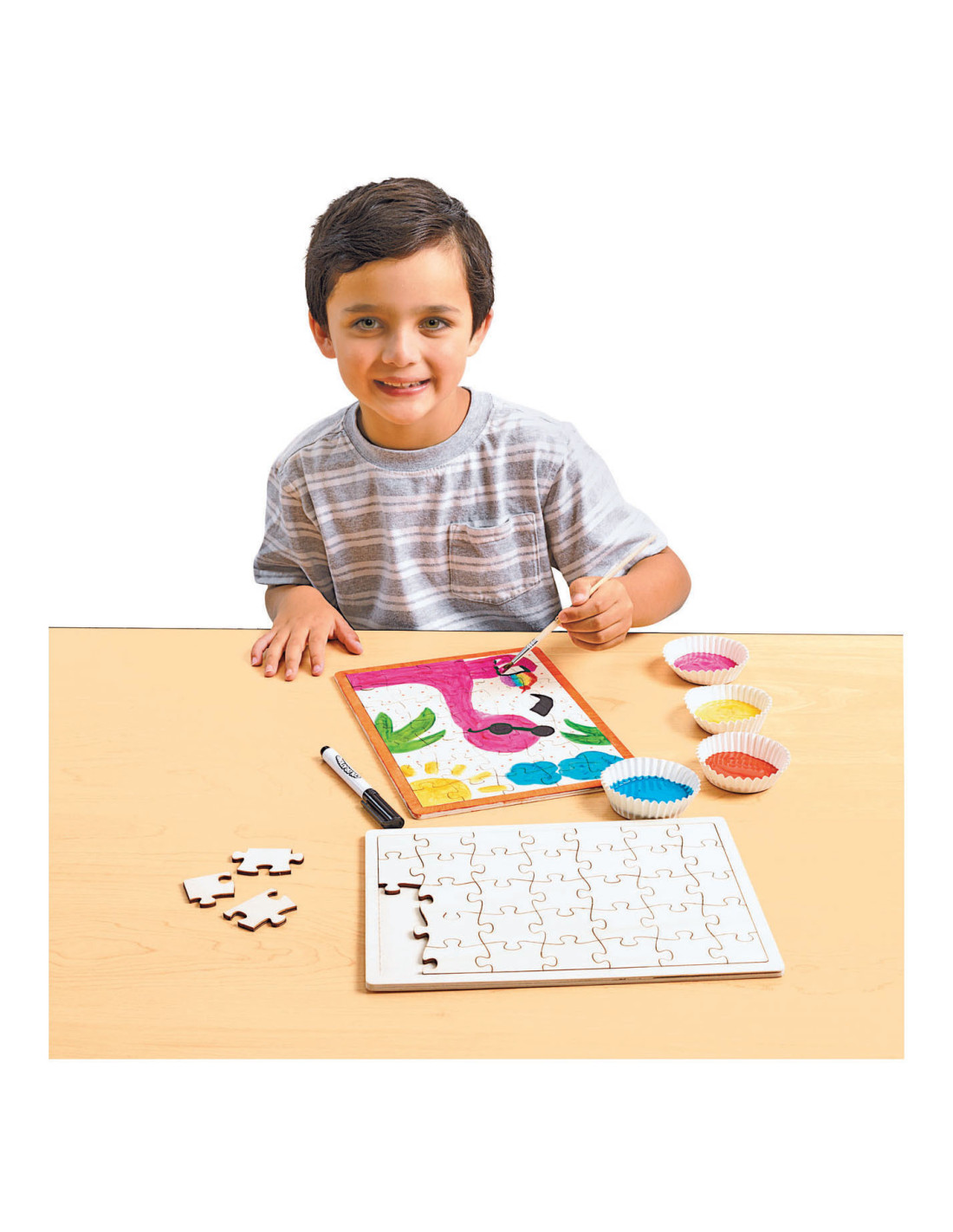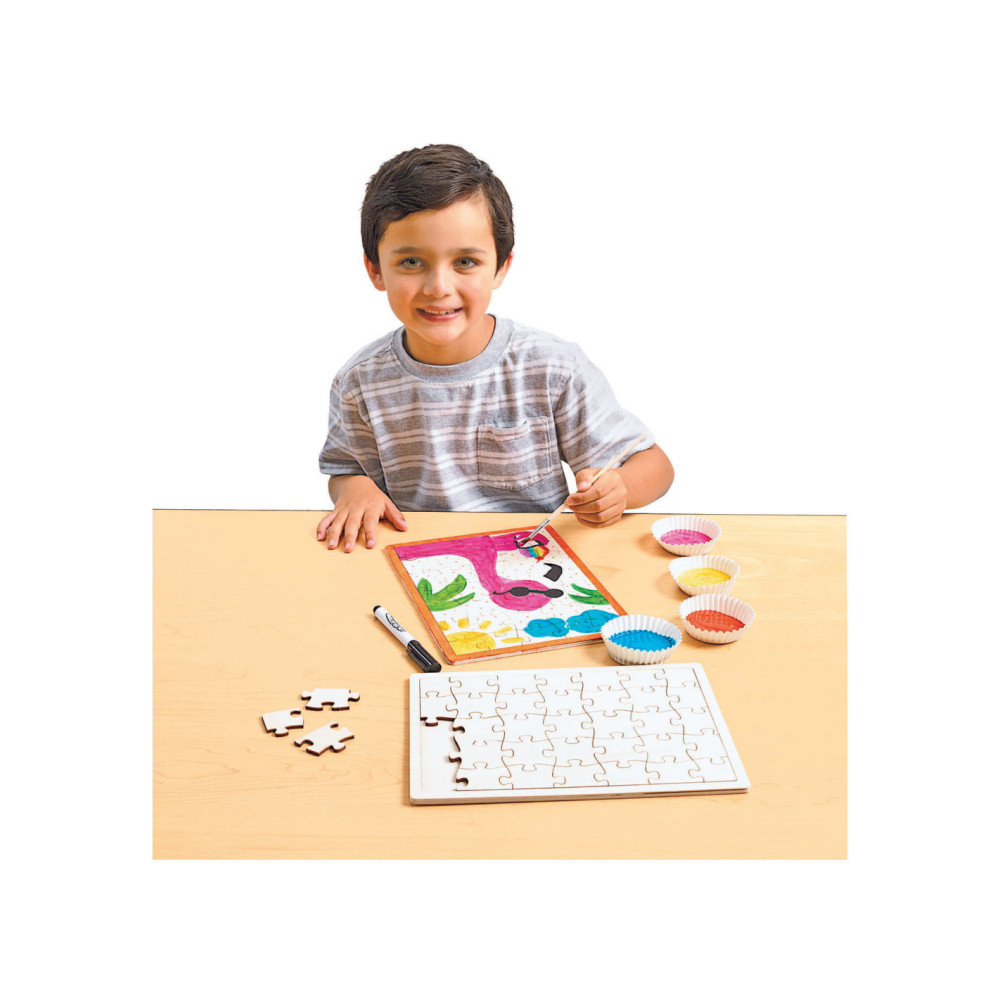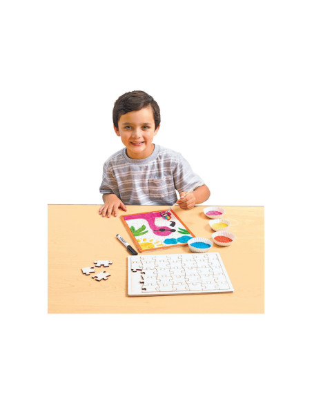 Behandel de puzzel als een leeg canvas. Gebruik verf, kleurpotloden, potloden of stiften om te tekenen en je eigen puzzel te maken, en voeg zelfs wat glitter toe! Maak je eigen foto of ontwerp!
