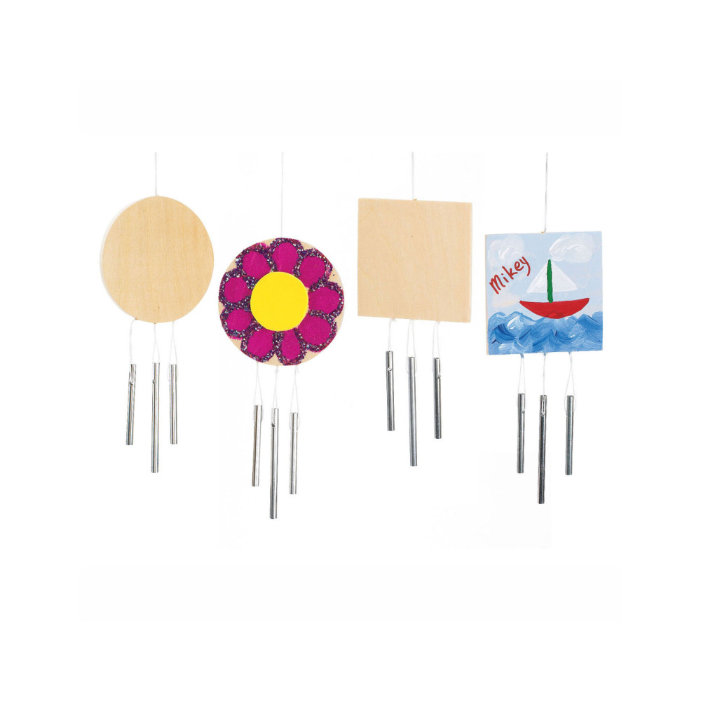Colorations- Versier je eigen Windgong is het perfecte doe-het-zelf-knutselwerk in de lente of op elk ander moment. Je ontvangt een set van 12 windgongs. De kit wordt geleverd met 6 houten cirkelontwerpen en 6 vierkante ontwerpen, elk met een diameter van respectievelijk 9 cm en 8,5 cm in het vierkant. Ook inbegrepen zijn snaren en 36 metalen klanken van elk 2 en 7,5 cm. Deze houten windgong is een leuk doe-het-zelf-knutselwerk waar zowel kinderen als volwassenen dol op zullen zijn. Verfraai met een verscheidenheid aan materialen, waaronder verf, stiften en collagematerialen.