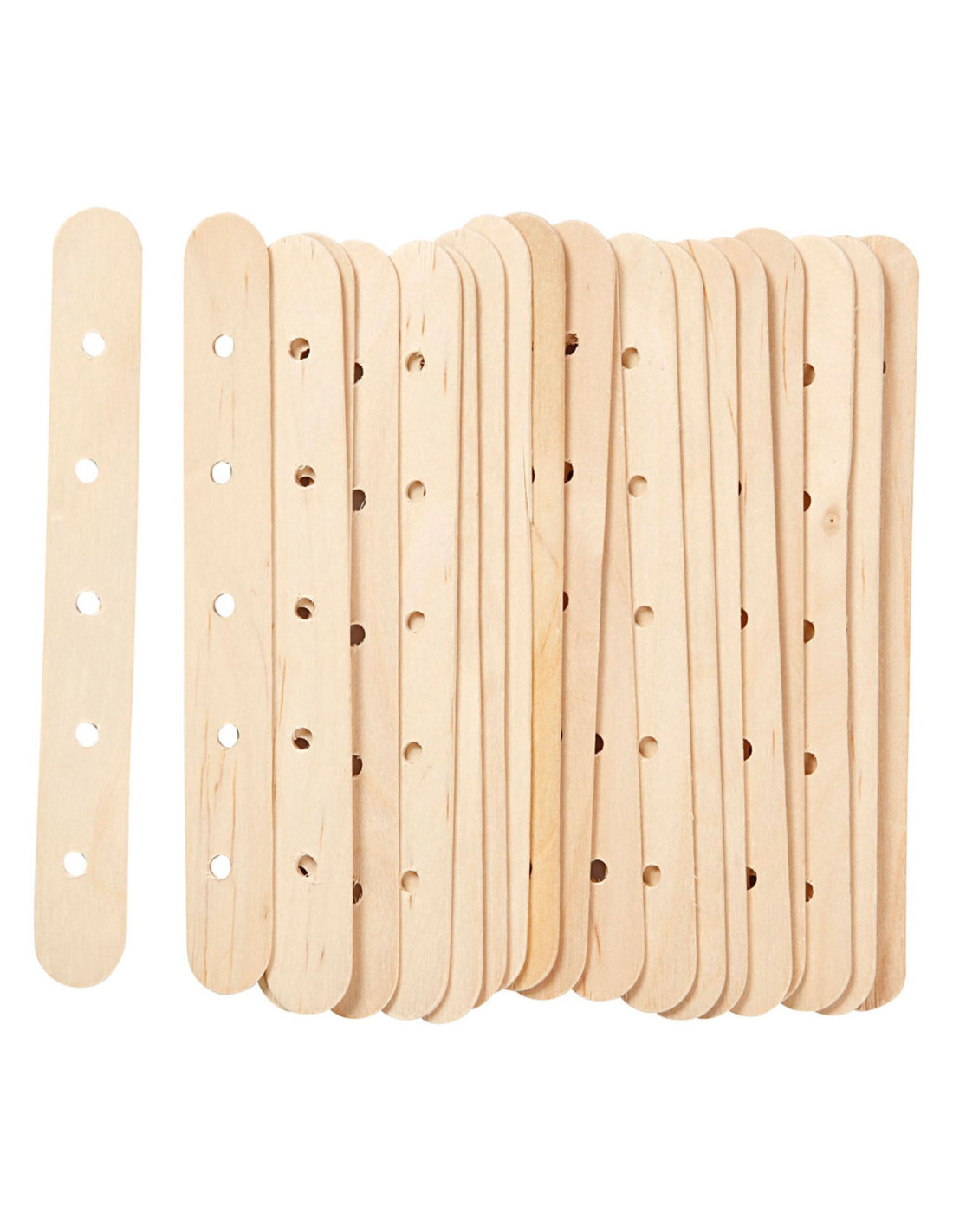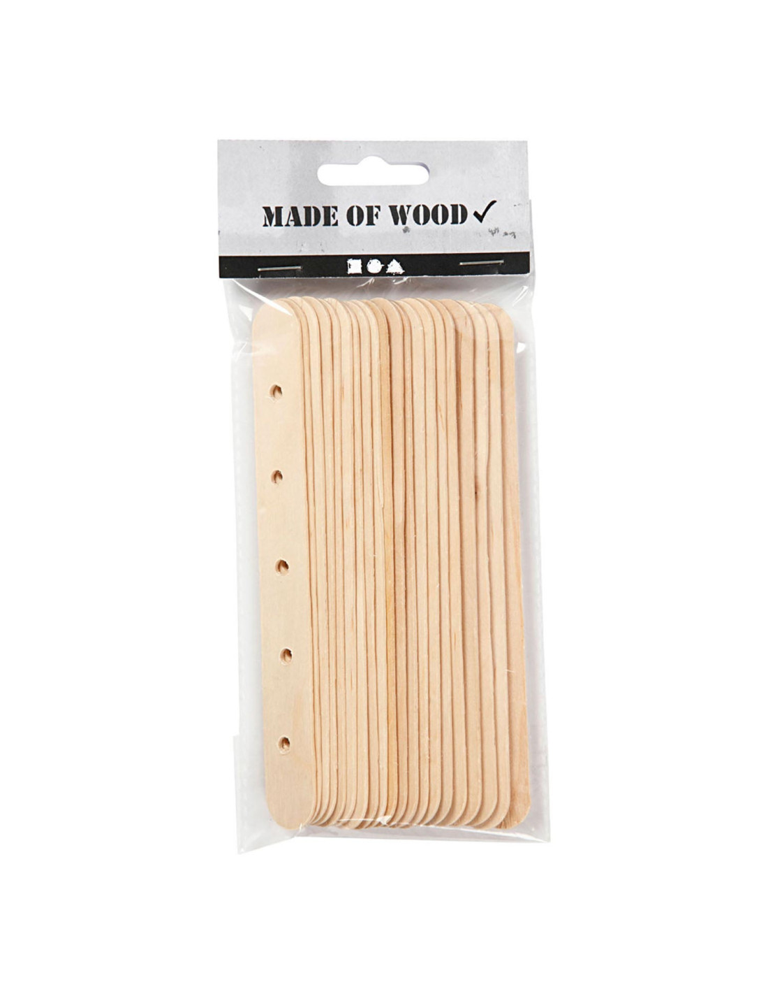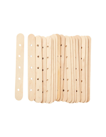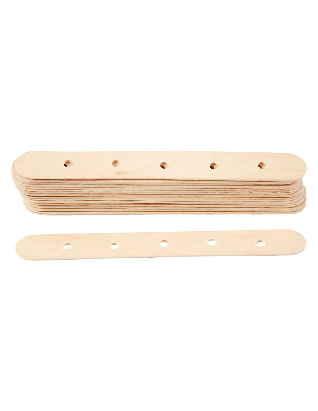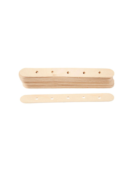 Met deze platte, naturel blank houten constructiestokjes kun je onbeperkt bouwen en creëren. Deze stokjes zijn ideaal voor kleine bouwprojecten en constructies, dankzij de geboorde gaten met een diameter van 4 mm. Het natuurlijke blank houten materiaal geeft de stokjes een rustieke en verfijnde uitstraling, perfect voor elke bouw- of knutselcreatie.
