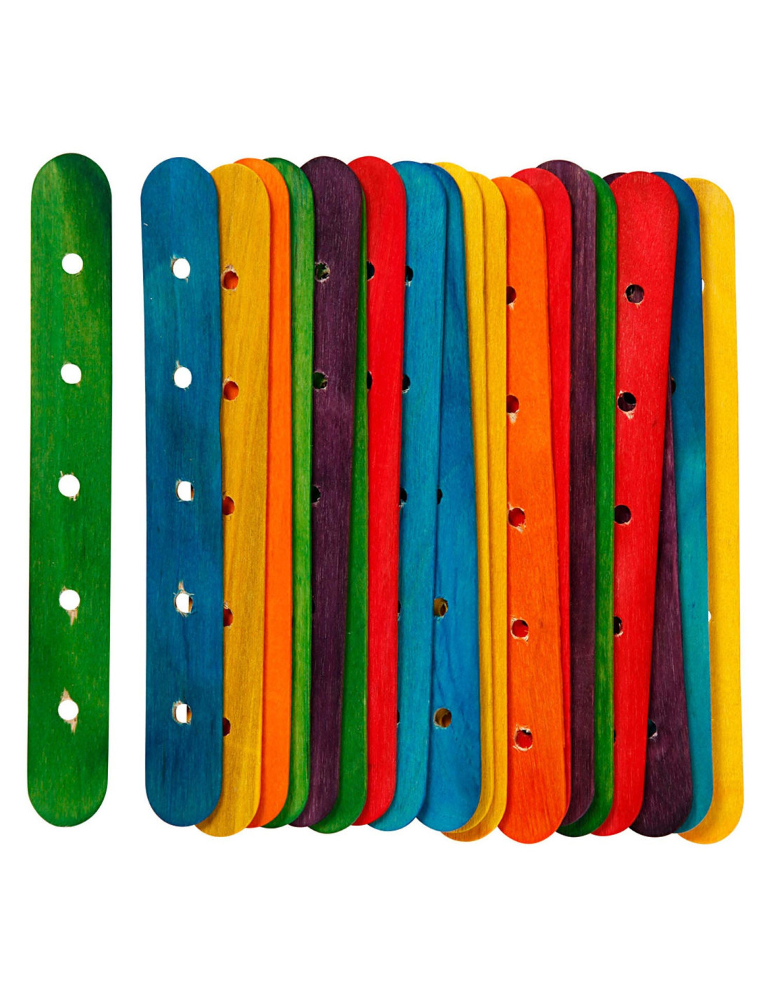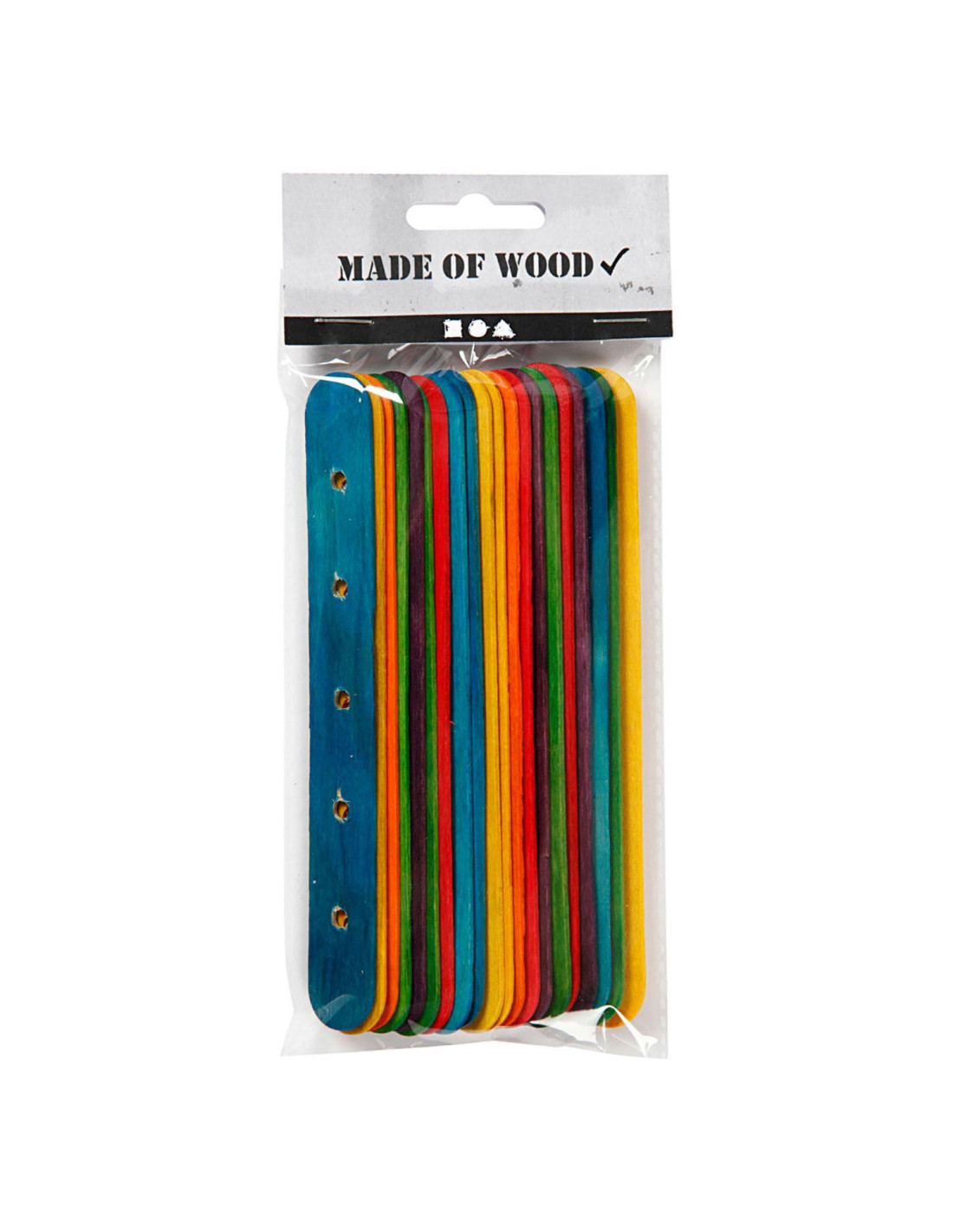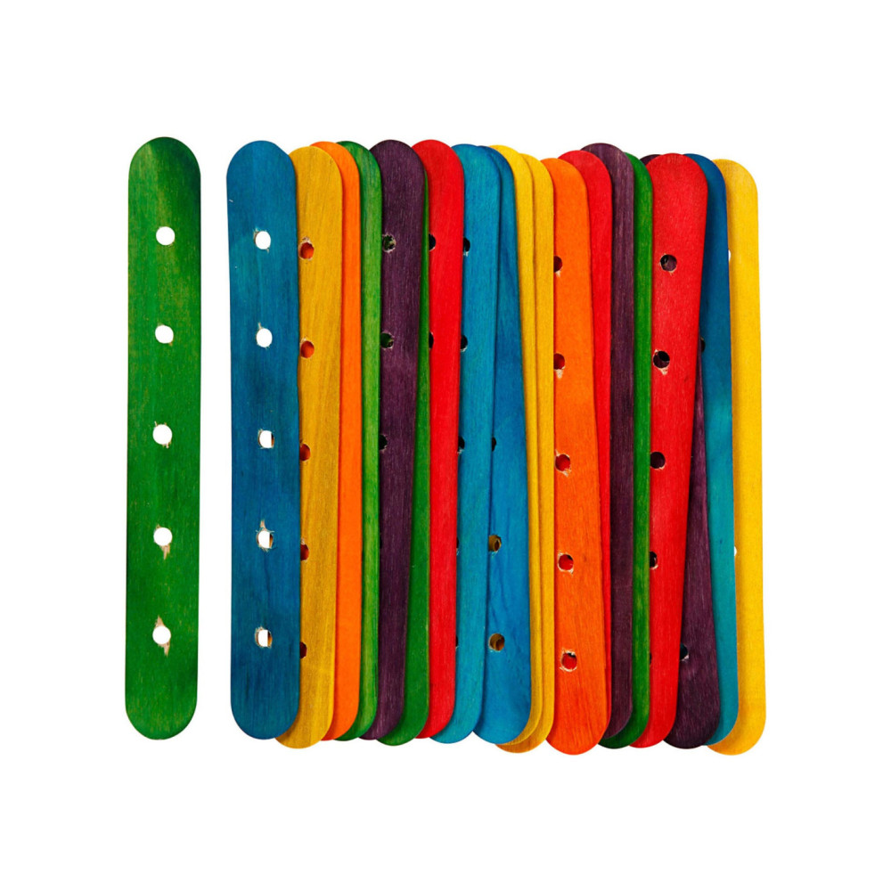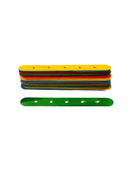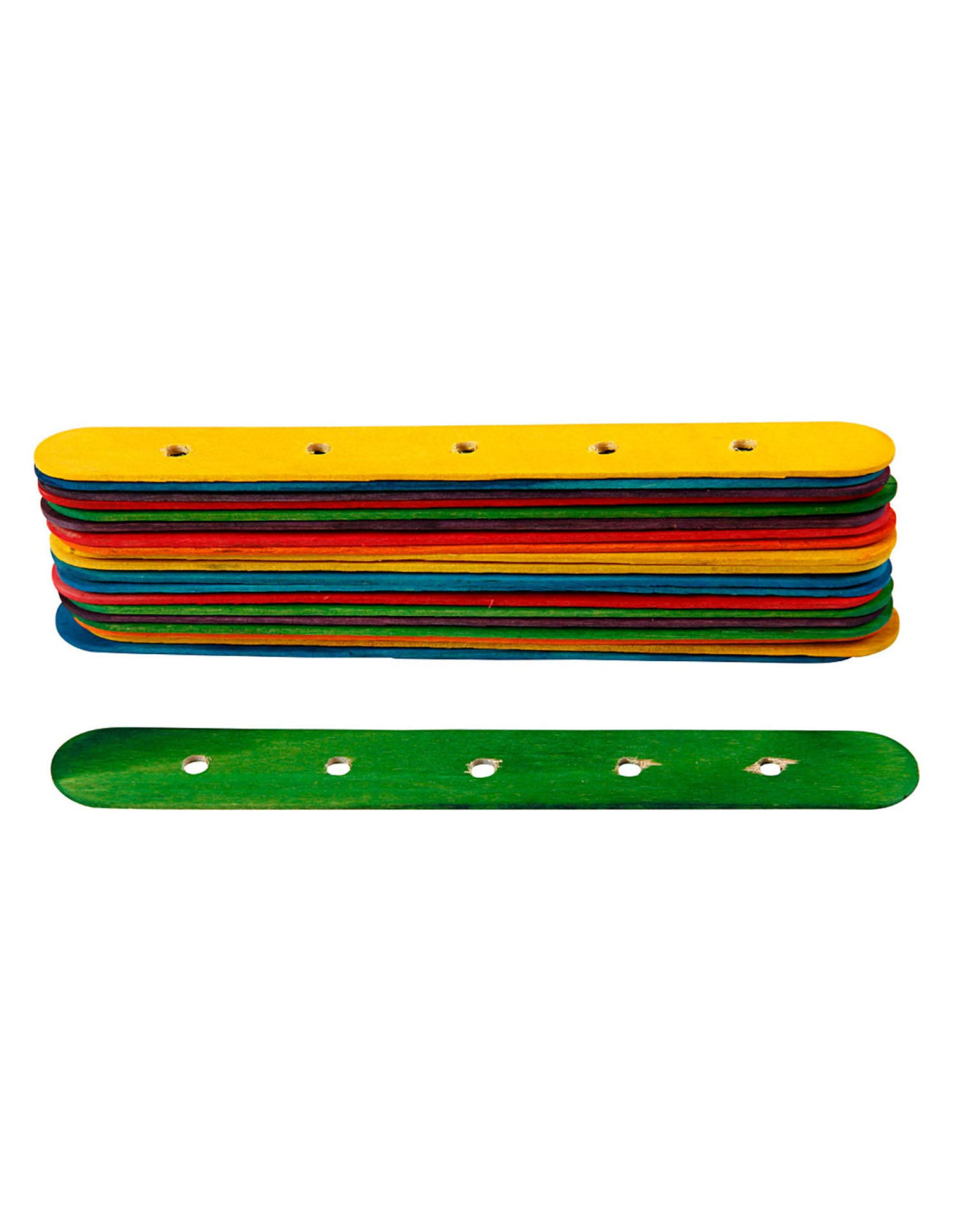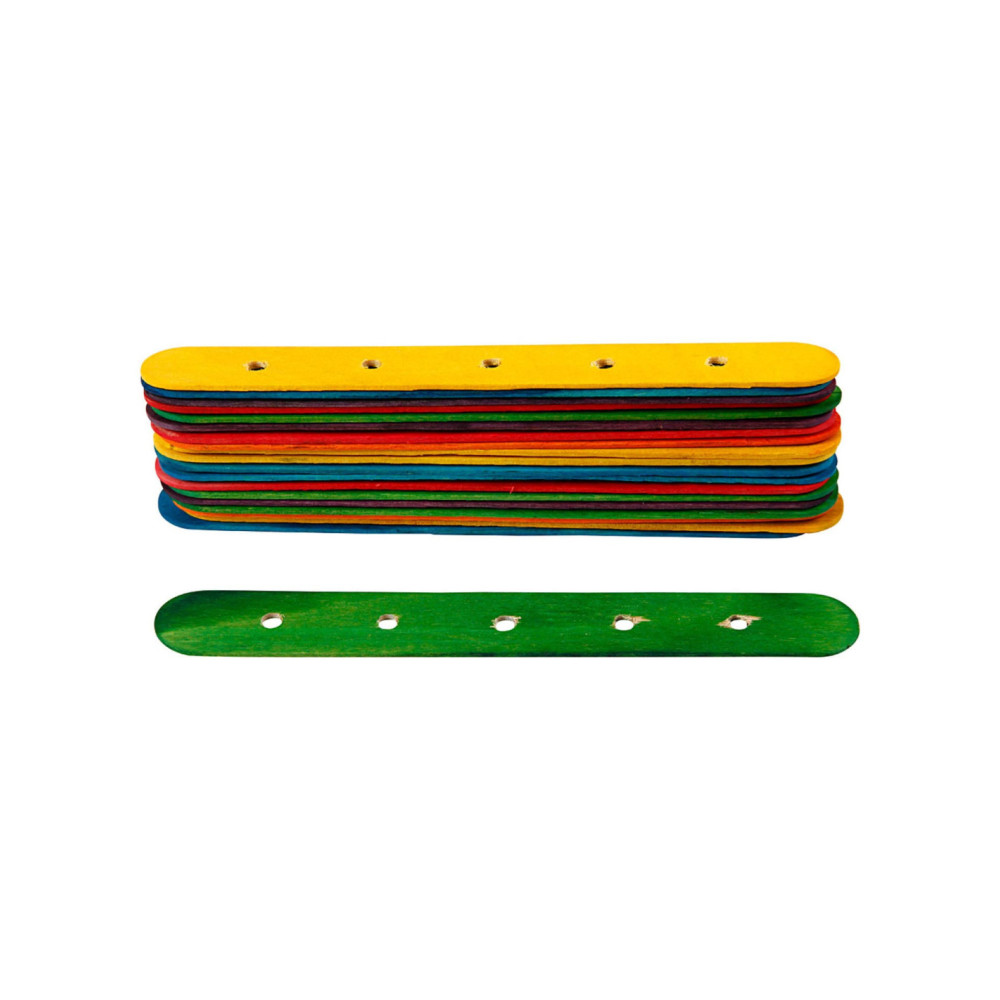 Met deze platte gekleurde houten constructiestokjes kun je de mooiste bouwprojecten creëren. De stokjes zijn voorzien van geboorde gaten, waardoor je ze gemakkelijk met elkaar kunt verbinden en zelfs de meest complexe constructies kunt bouwen. De gatgrootte is 4mm, waardoor je eindeloos kunt variëren in de manier waarop je de stokjes aan elkaar bevestigt.