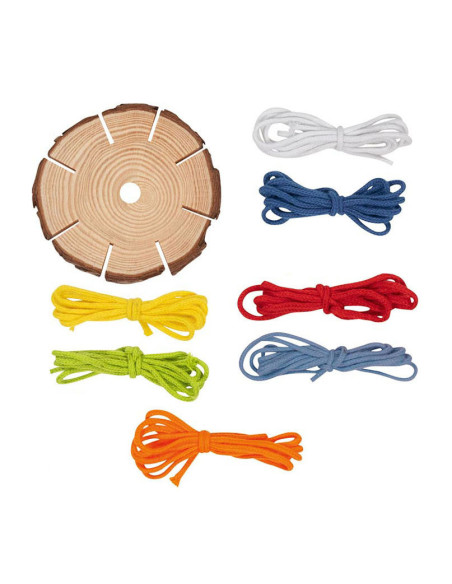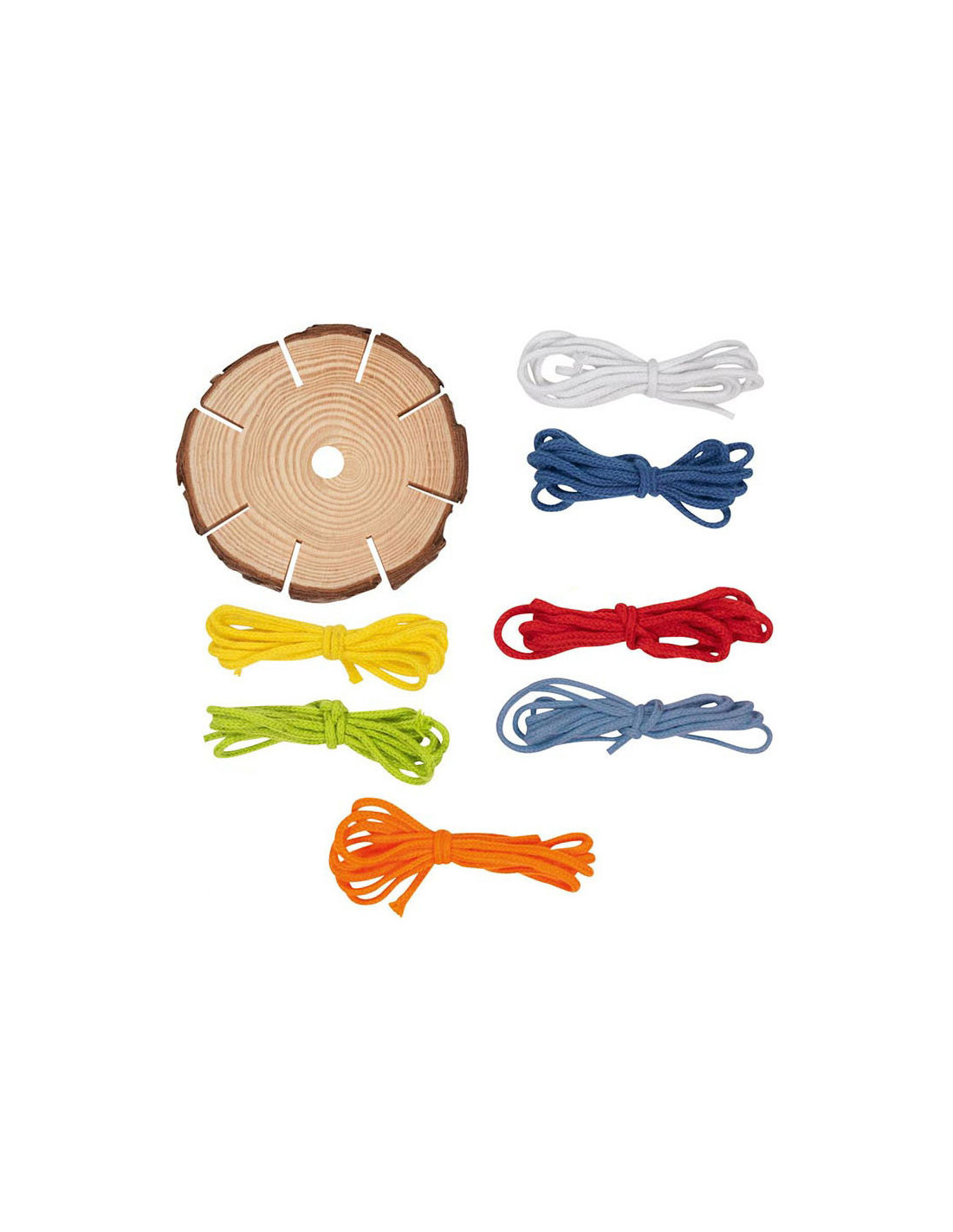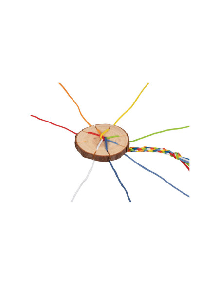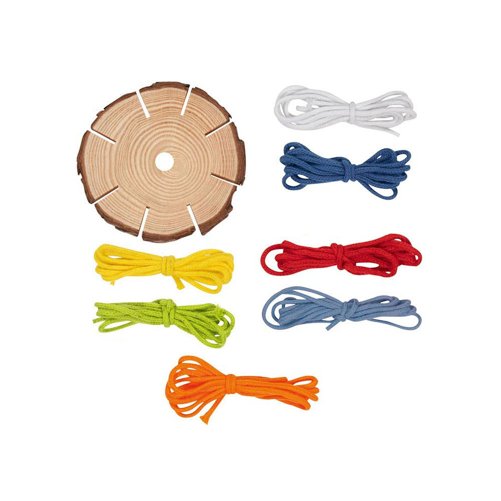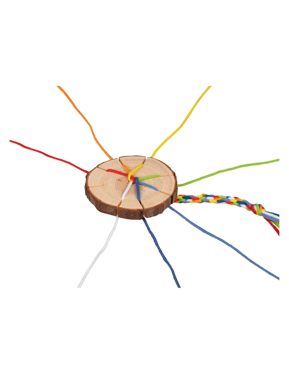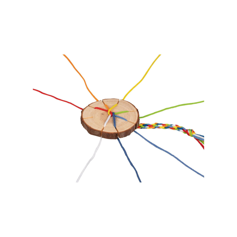 Goki vlechtschijf van een houten boomschijf. Inclusief 7 kleuren vlechtdraad. Voor het ontwerpen van vriendschapsarmbandjes of je eigen kleine creatieve kunstwerkjes.