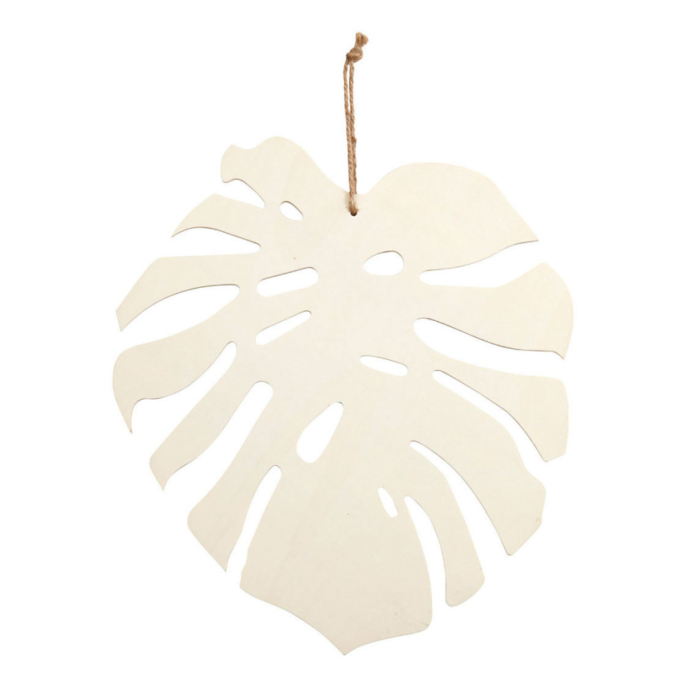 Uitgesneden Monstera blad gesneden uit licht hout met ophanglus