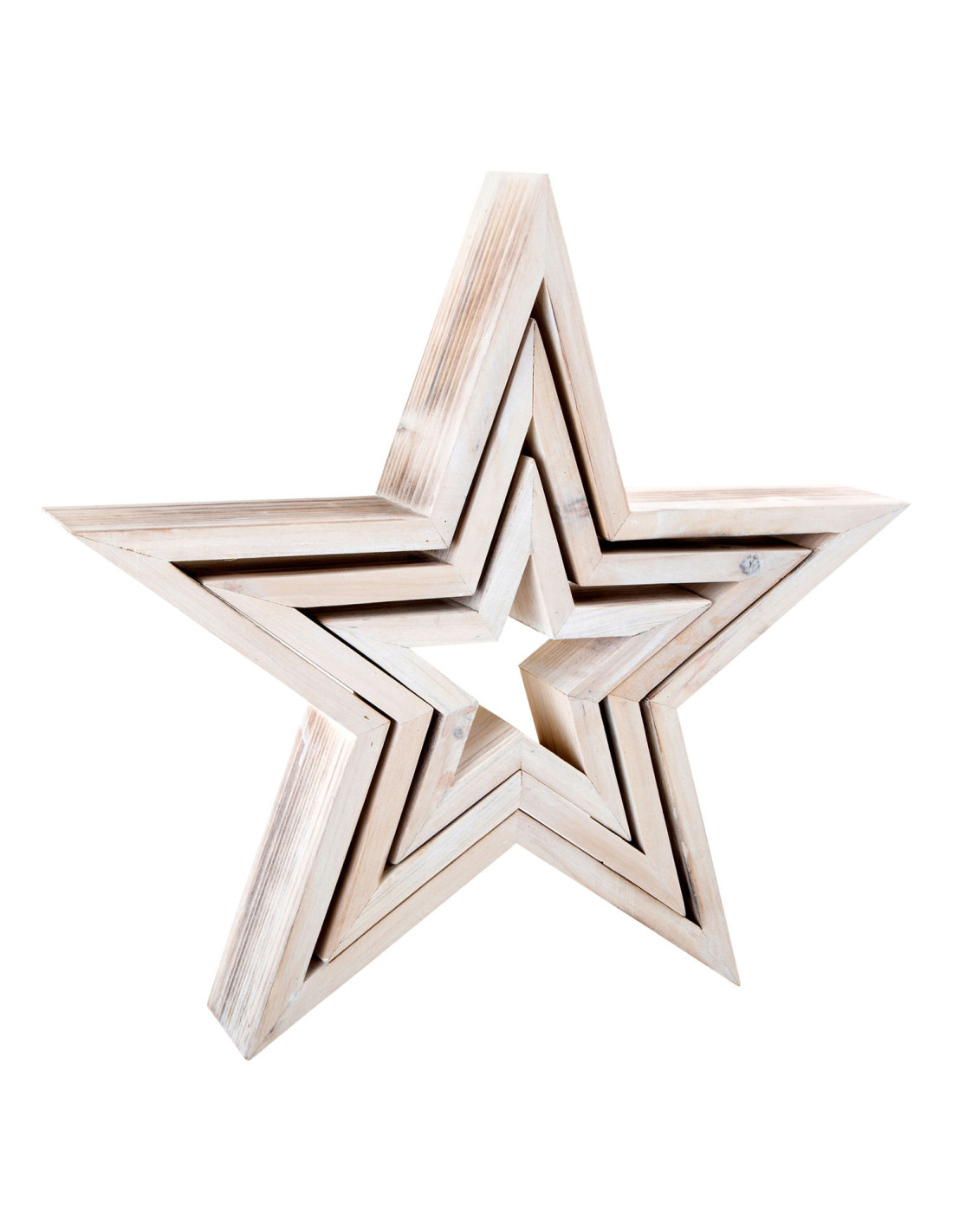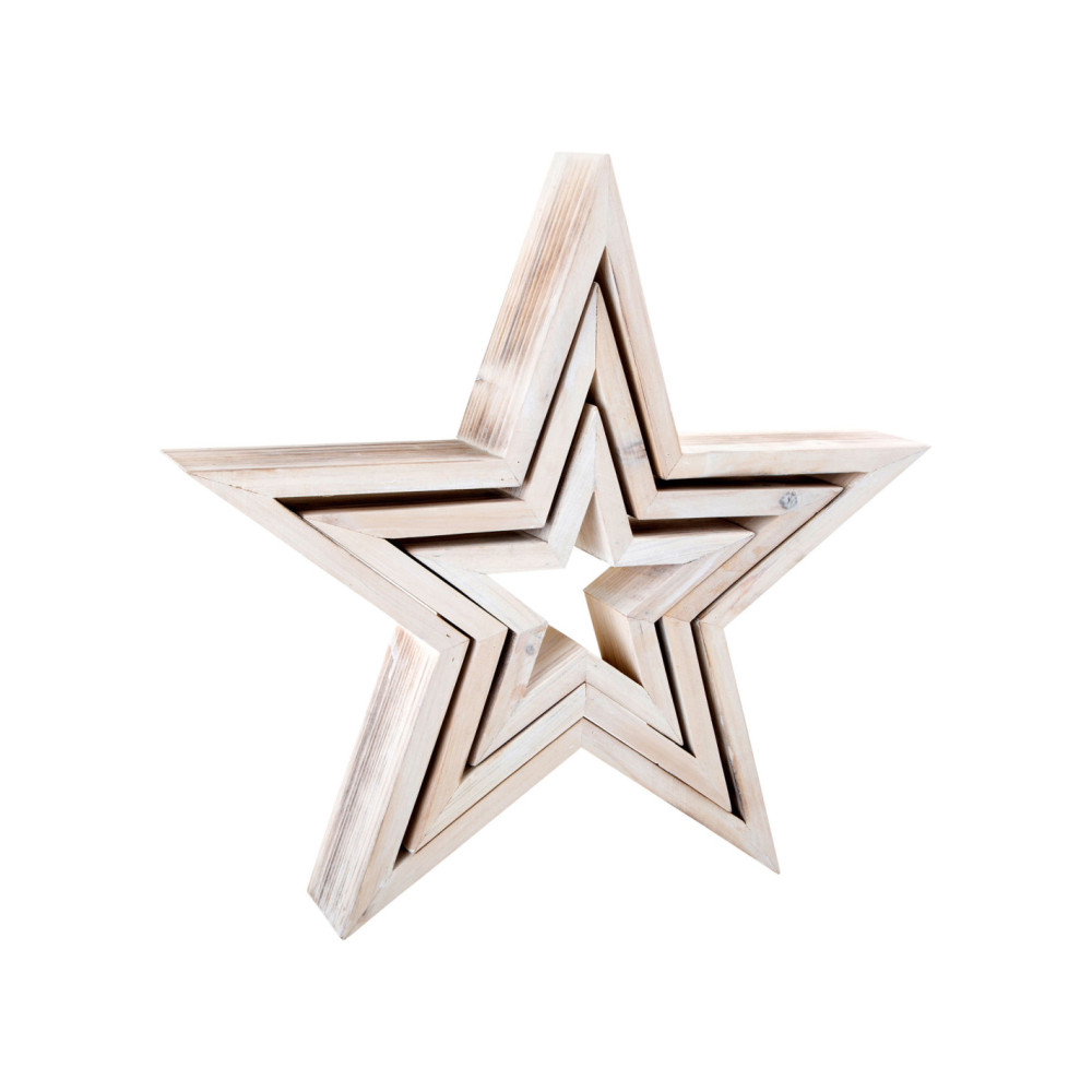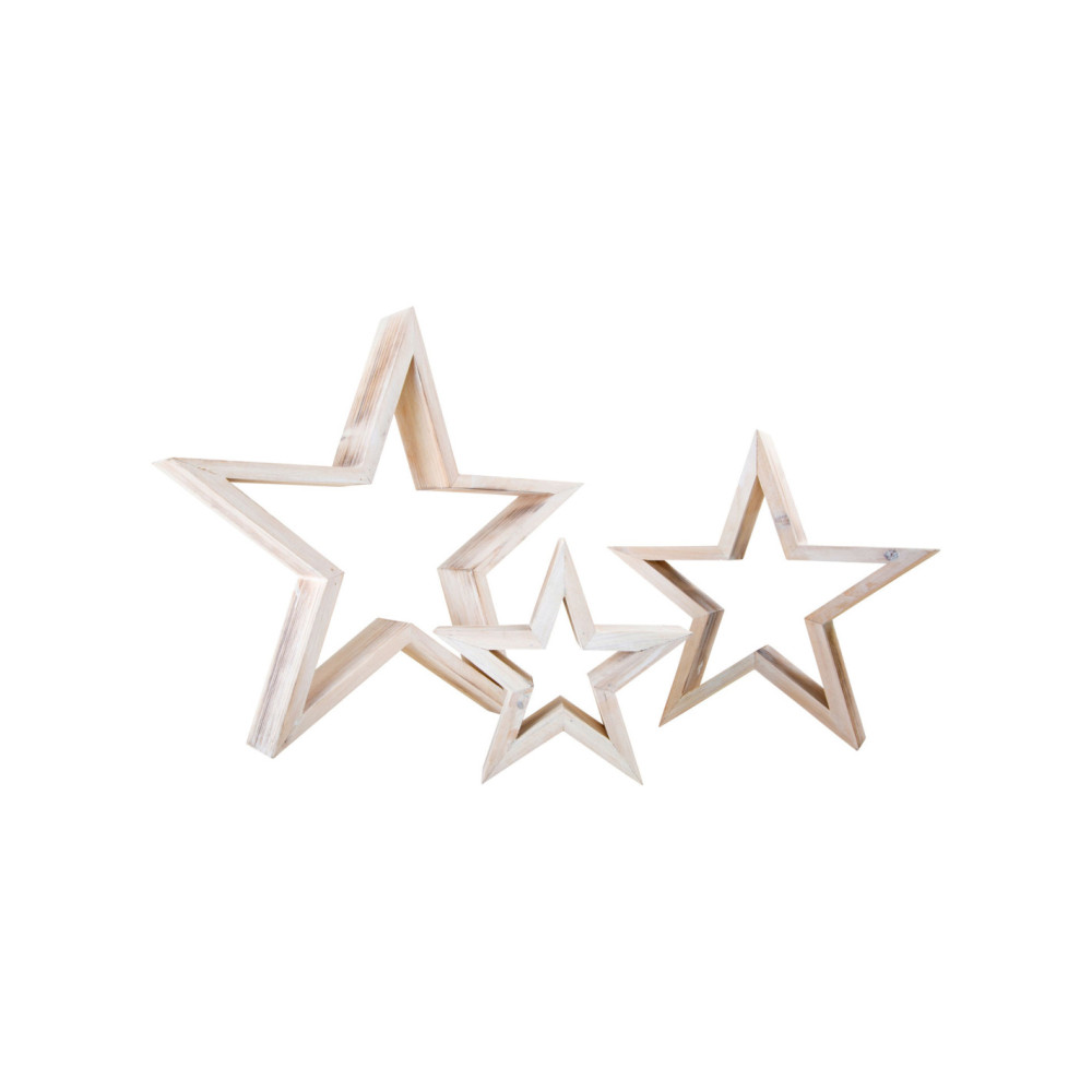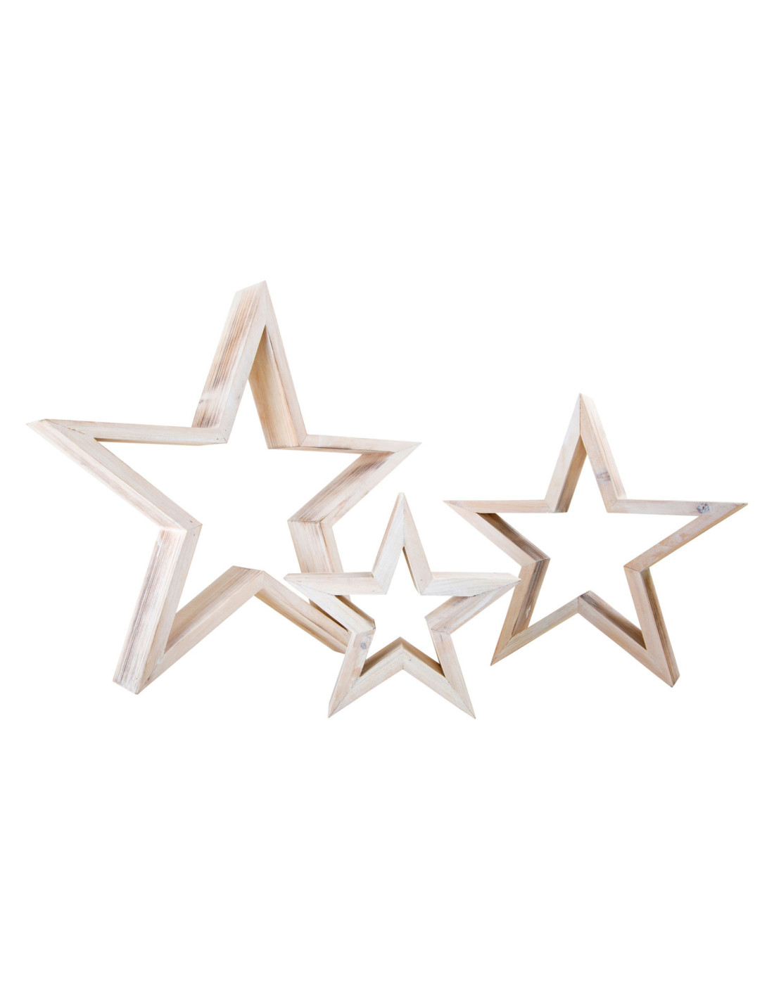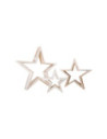 Drie shabby chique sterren van verschillende grootte zien er geweldig uit als decoratie in de kersttijd. Ze zien er aantrekkelijk uit, zowel plat als rechtopstaand.