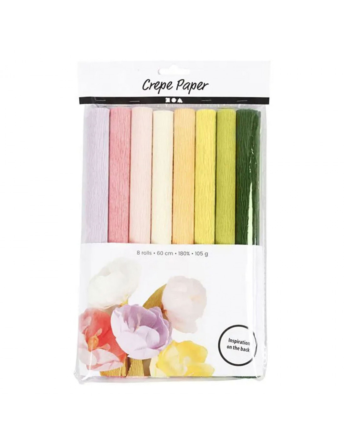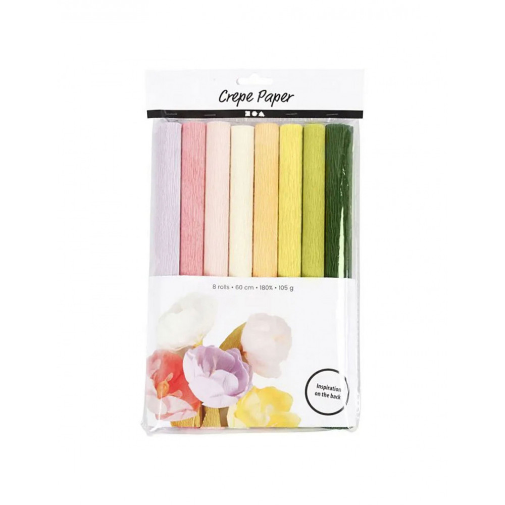 Crêpepapier met een crêpe-verhouding van 180%, waardoor het perfect is voor het maken van papieren bloemen, omdat het gemakkelijk kan worden uitgerekt en gevormd zonder te breken. Het papier heeft een mooi gecrêpt oppervlak en verliest zijn vorm niet nadat het is gevormd en bewerkt.
