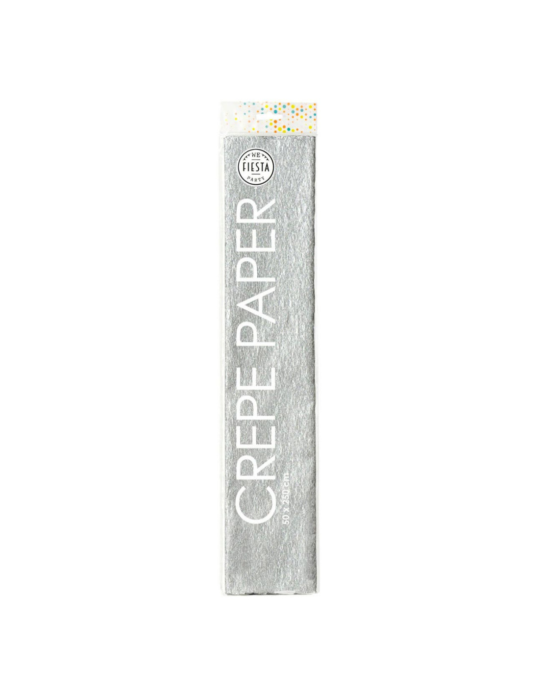 Zilver gekleurd crêpepapier, 50 bij 250 centimeter.