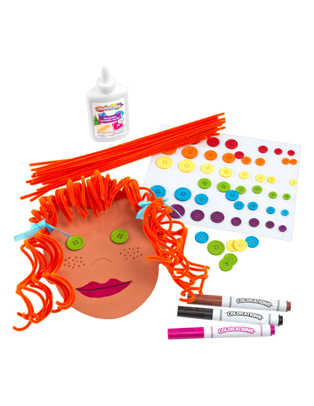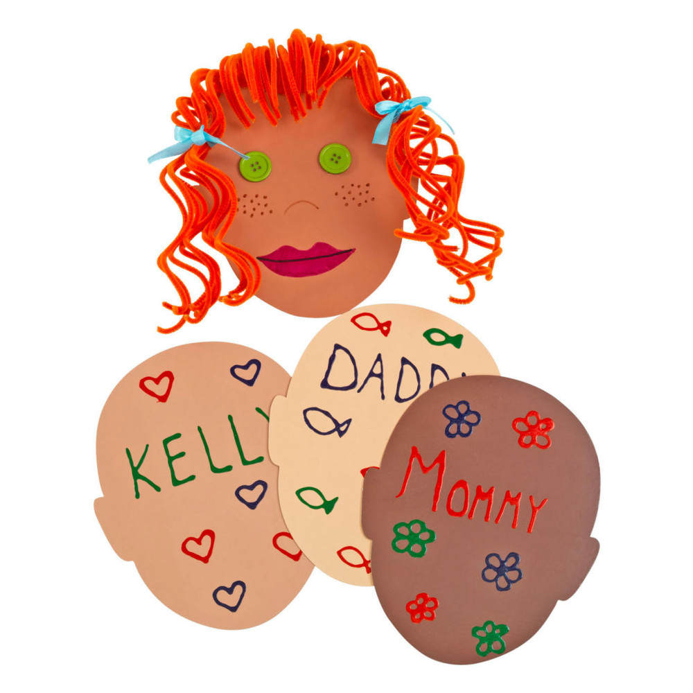 • HANDIG: Gezichten zijn al uitgesneden; geen schaar nodig. Voeg eenvoudig het materiaal van uw keuze toe en u bent klaar om te gaan!