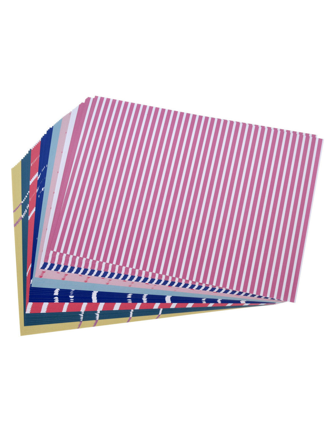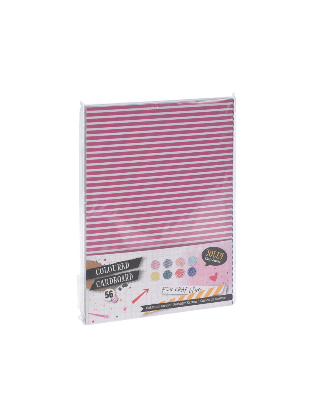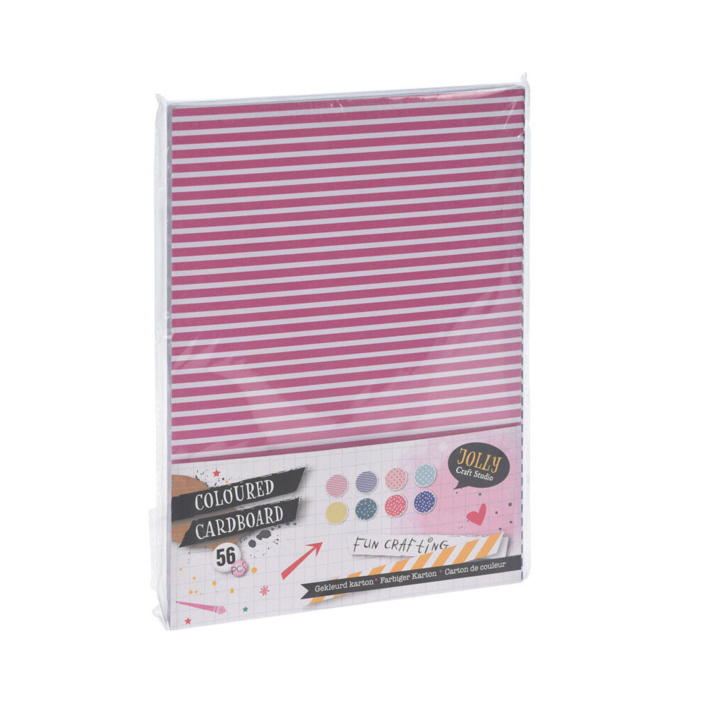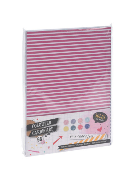Set met 56 vellen knutselkarton op A4-formaat. Met o.a. streepjes in verschillende kleuren.