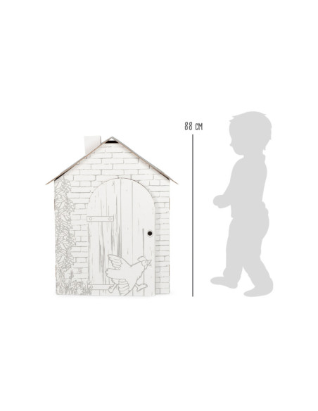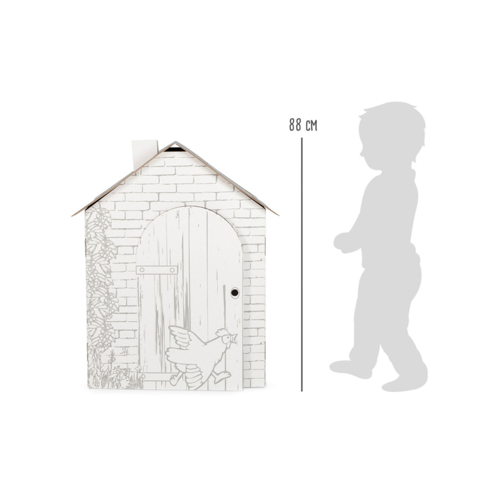 Mijn eigen huis - dat zou wat zijn! Dit huis is gemaakt van karton en kan eenvoudig in elkaar worden gezet, zonder steen en voegwerk. En het mooie is: het kan individueel worden vormgegeven met waskrijtjes, vilt en kleurpotloden. Het raam en de deur zijn geperforeerd en kunnen eenvoudig worden geopend en weer worden gesloten. Een geweldig speelhuis dat niet mag ontbreken in elke kinderkamer. Ook in de tuin is dit kartonnen huisje een echte eyecatcher!