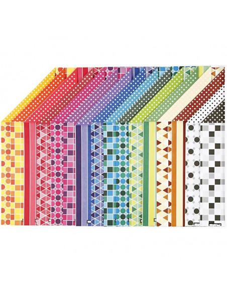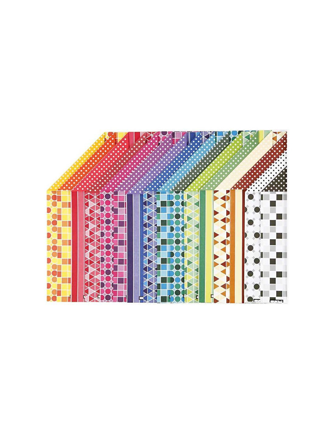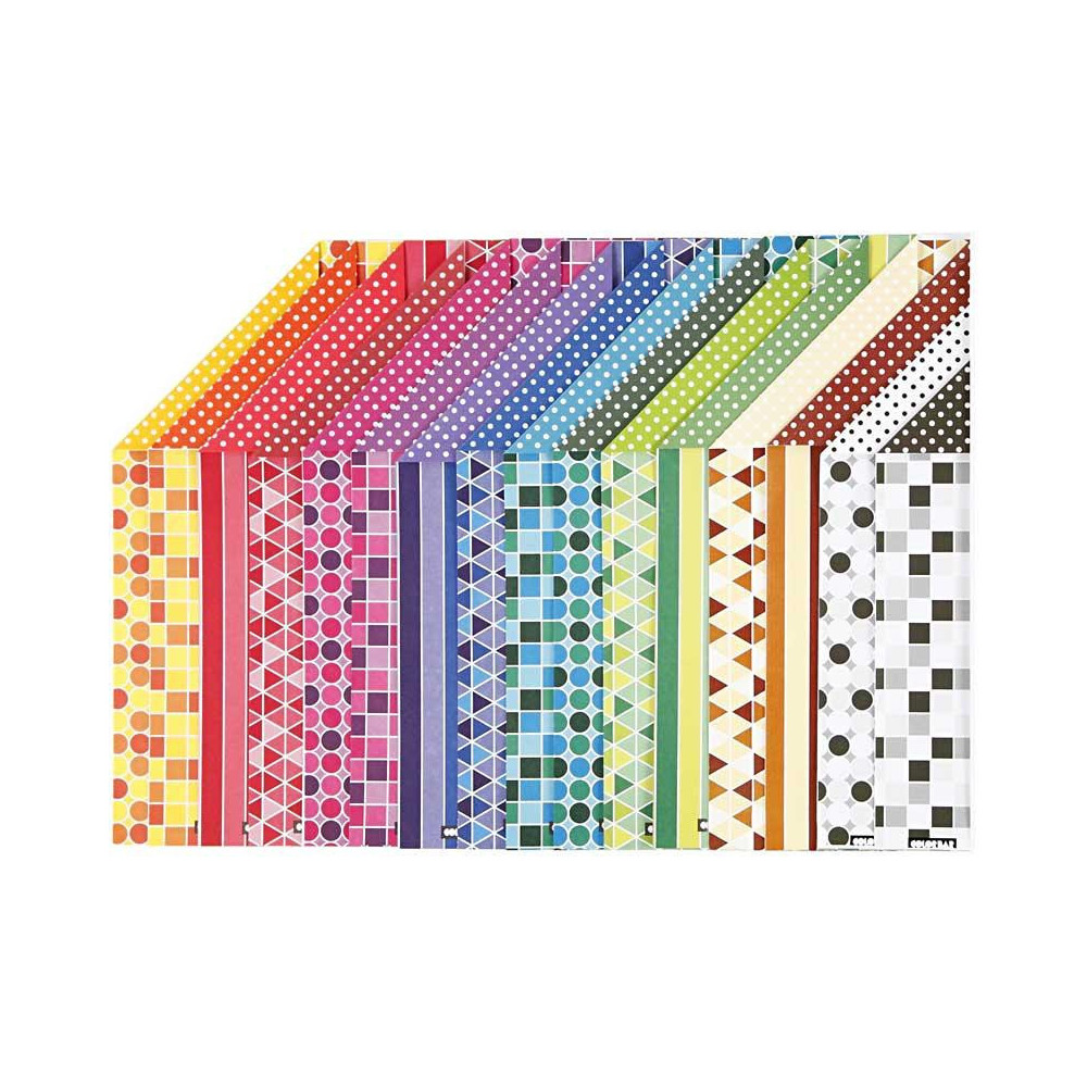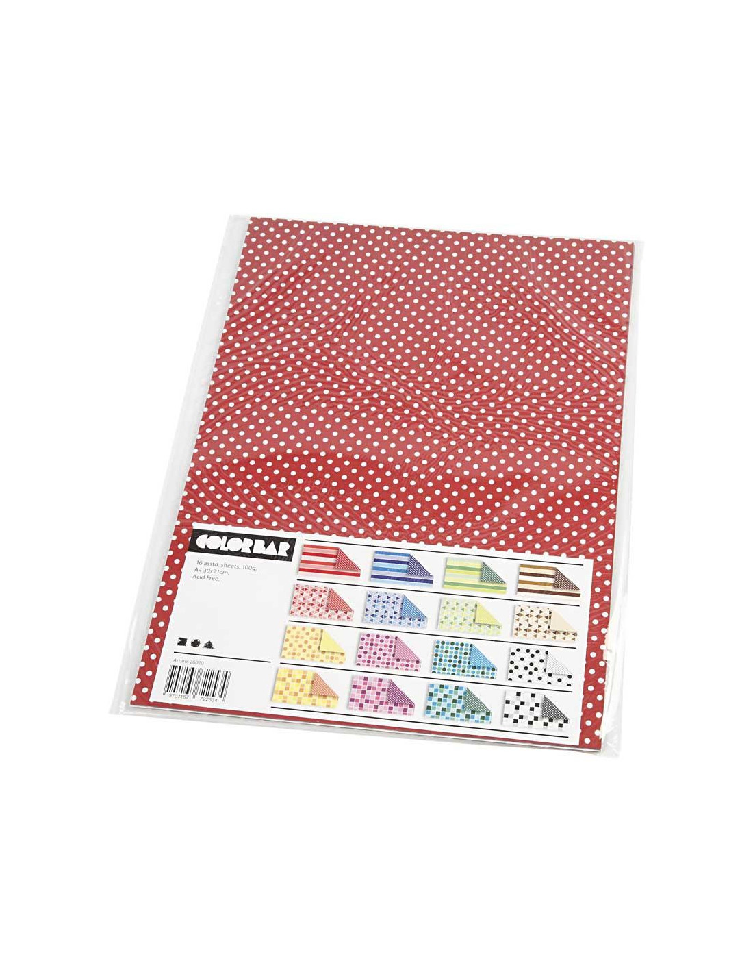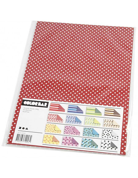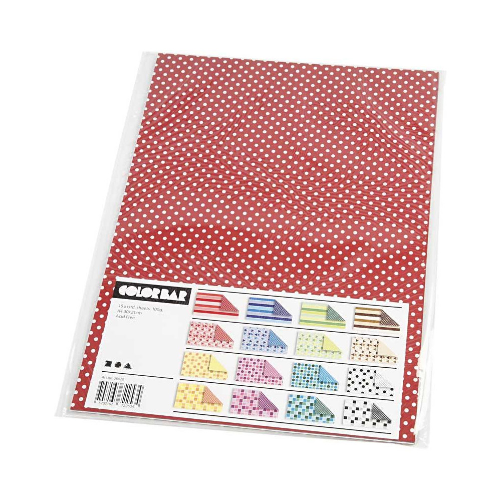 Dit Color Bar papier van Creotime bestaat uit 16 dubbelzijdige vellen met verschillende, vrolijke patronen aan elke kant. Het 100 grams papier heeft een A4-formaat. Het color bar logo is op het papier gedrukt.