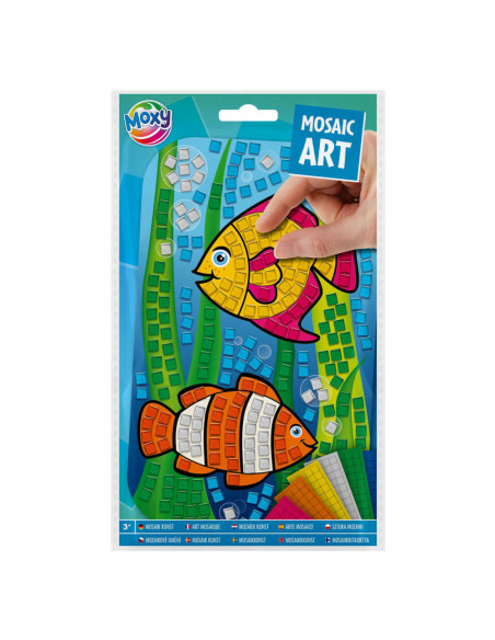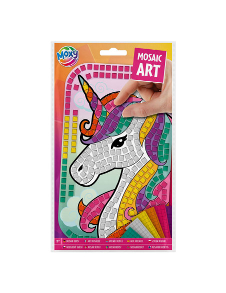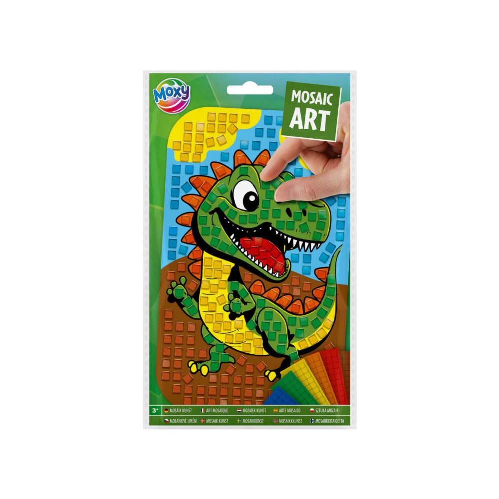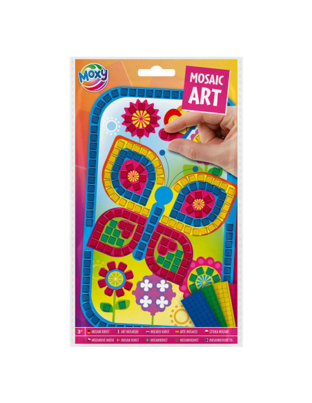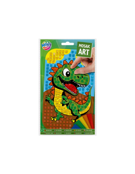 Knutselsetje voor het maken van een mozaïekkunstwerkje van vierkante stickers. Verkrijgbaar in variant vlinder, dino, eenhoorn en aquarium. De afbeelding is op A5-formaat. Geschikt vanaf 3 jaar.