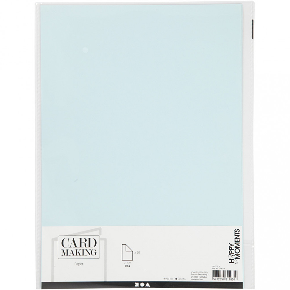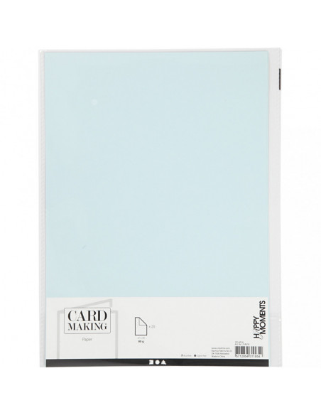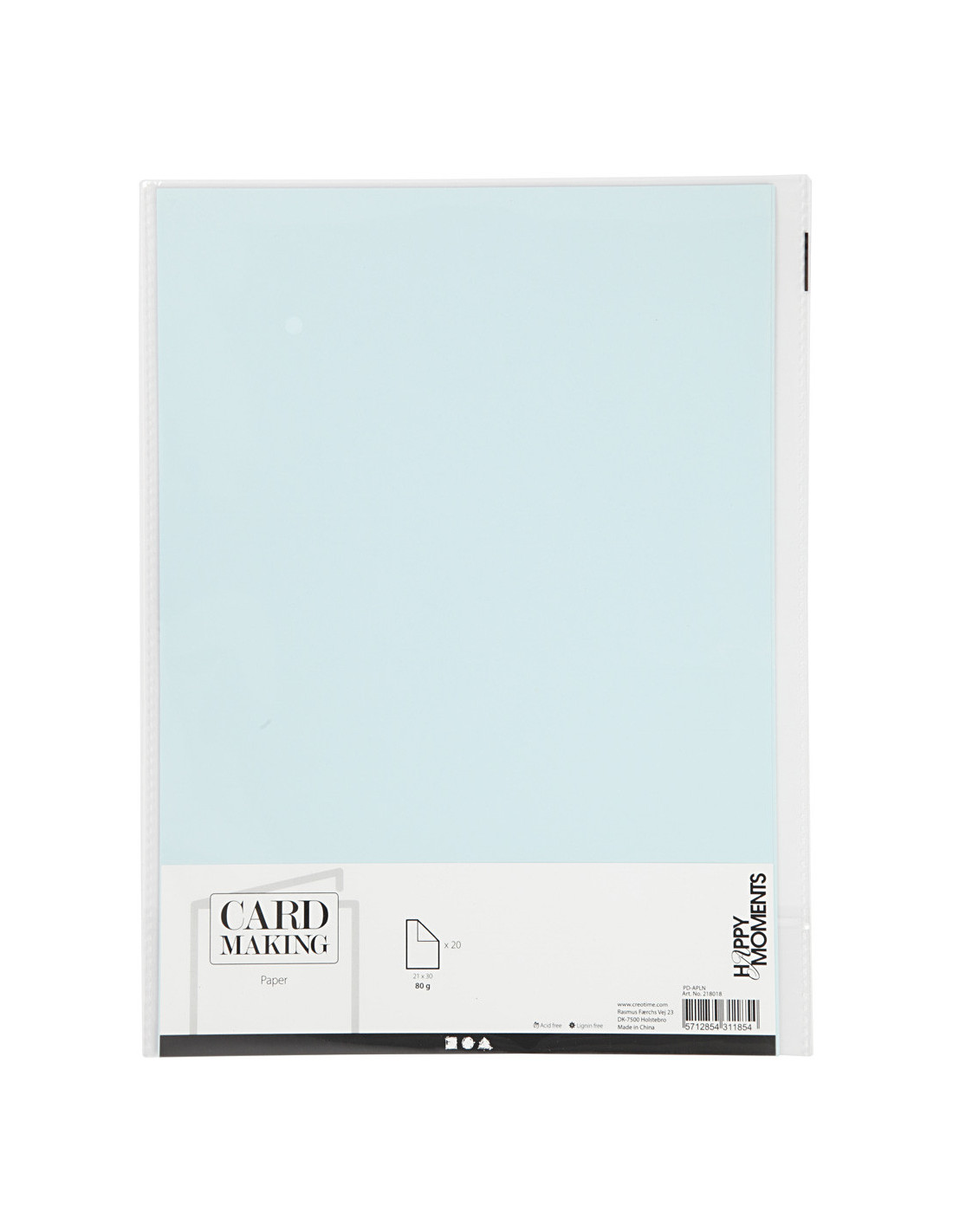 Pak met hoge kwaliteit lichtblauw knutselpapier. Het 80 grams A4-papier is ideaal voor het maken van kaarten of andere stevige knutselwerken. In de verpakking zitten twintig vellen.
