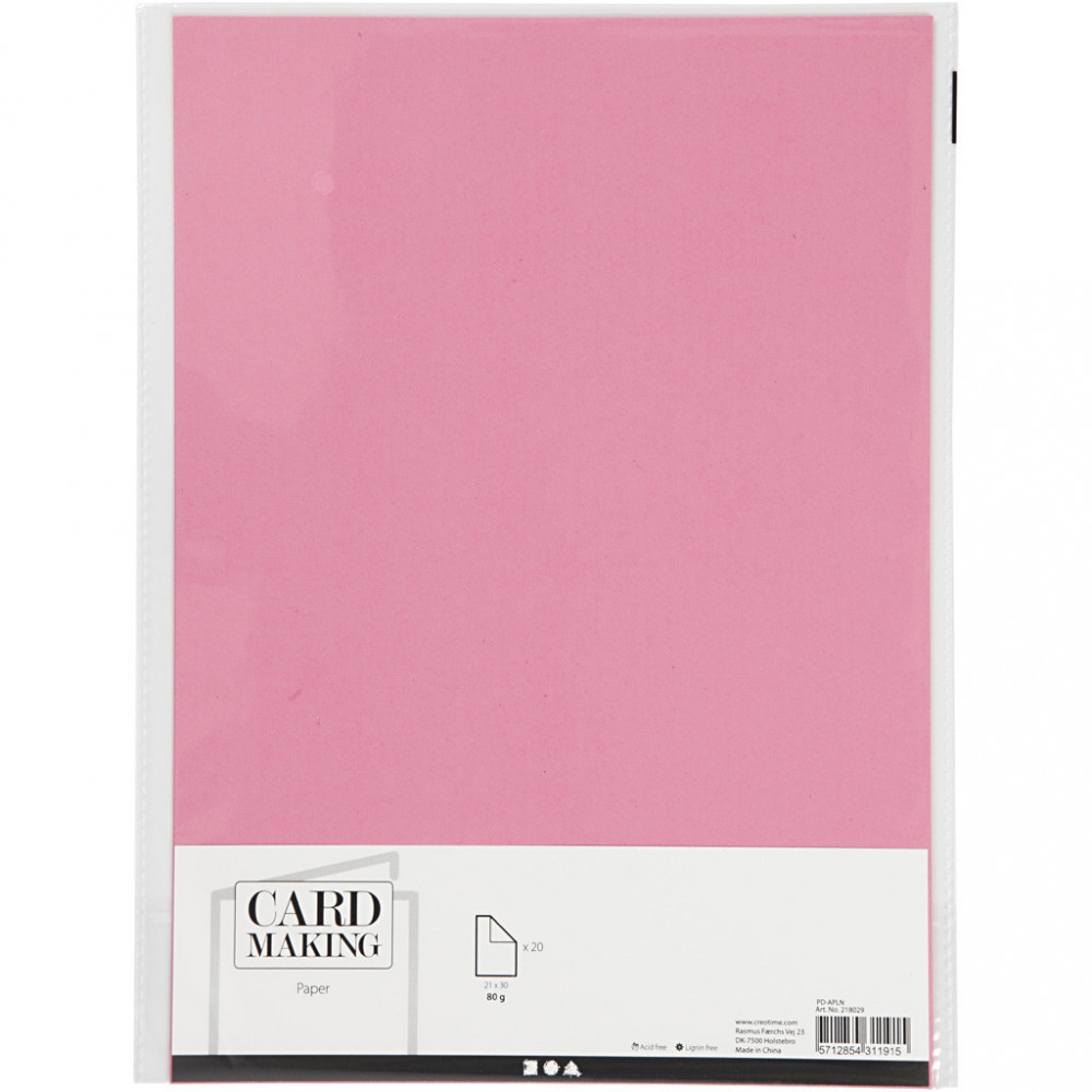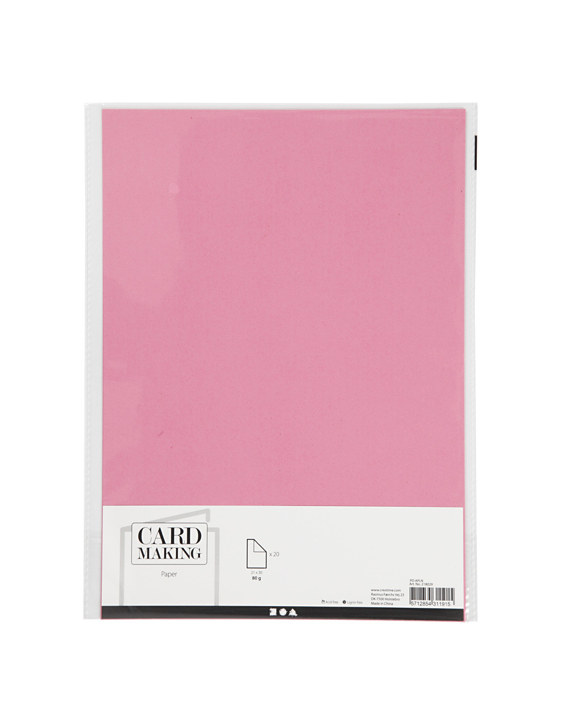 Pak met hoge kwaliteit roze knutselpapier. Het 80 grams A4-papier is ideaal voor het maken van kaarten of andere stevige knutselwerken. In de verpakking zitten twintig vellen.
