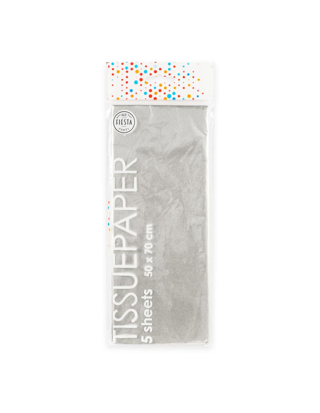 10 vellen zilverkleurig tissuepapier, ook wel zijdepapier genoemd. Afmeting: 50 bij 70 cm.