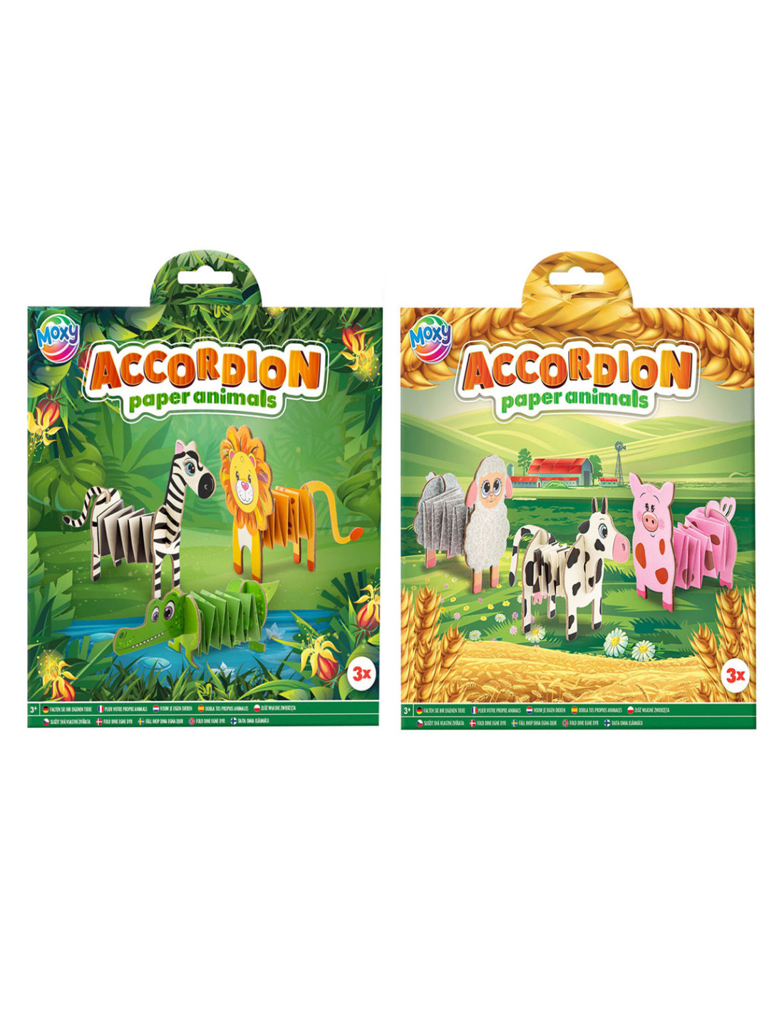 Knutselsetje voor het maken van grappige accordiondieren. Met dit setje maak je 3 jungledieren (zebra, leeuw en krokodil) of 3 boerderijdieren (schaap, koe en varken). Geschikt voor kinderen vanaf 3 jaar.