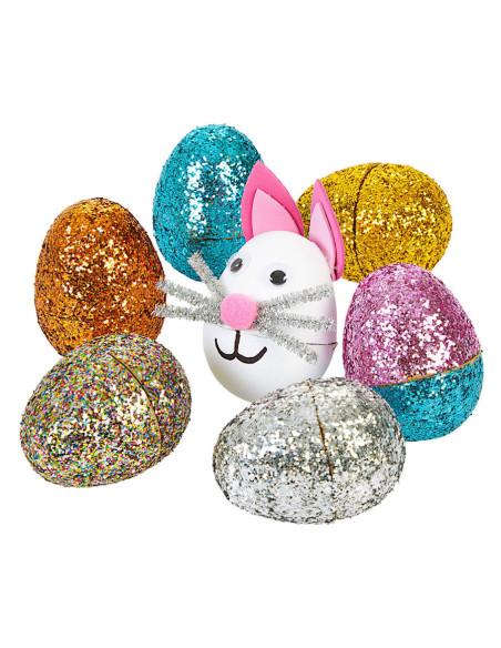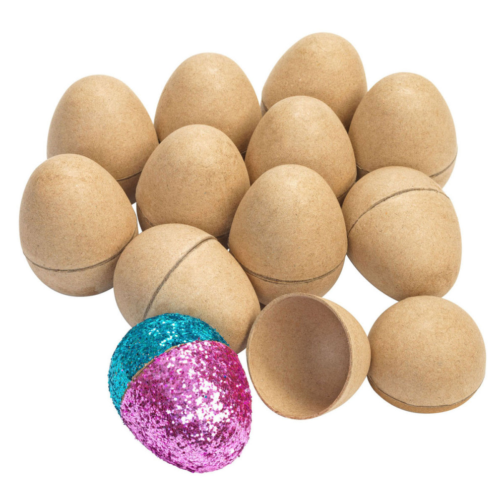 Deze activiteit zal er zeker voor zorgen dat kinderen en volwassenen enthousiast worden over knutselen. Je krijgt een set van 12 lichtbruine eieren van papier-mache. Onze eieren gaan open en dicht, zodat je er dingen in kunt toevoegen! Voeg aantekeningen of lekkernijen toe aan de binnenkant door de boven- en onderkant van het ei eenvoudig uit elkaar te trekken. Onze eieren zijn blanco, dus je kunt ze naar eigen inzicht decoreren en personaliseren! Gebruik verf, stiften, glitter, lijm, edelstenen en meer om te versieren! Alle producten zijn op kwaliteit getest en veilig voor kinderen.