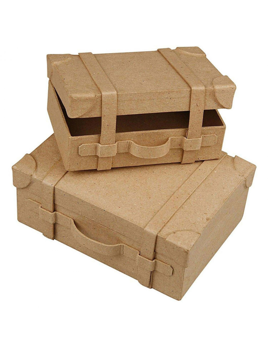 Ze zijn gemaakt van papier-maché en zijn perfect als decoratie of opbergruimte. Er zijn twee maten beschikbaar: Grote koffer: 14 x 10 x 5 cm Kleine koffer: 11 x 7,5 x 4,5 cm