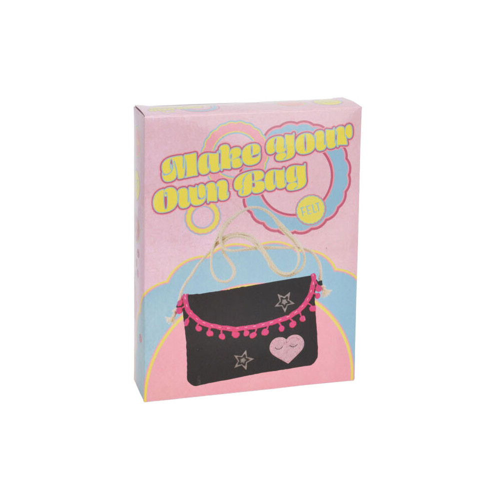Set waarmee een zwart, vilten tasje gemaakt kan worden. De set bevat verschillende kleuren vilt, garen en kraaltjes. De set is geschikt voor kinderen vanaf 3 jaar.