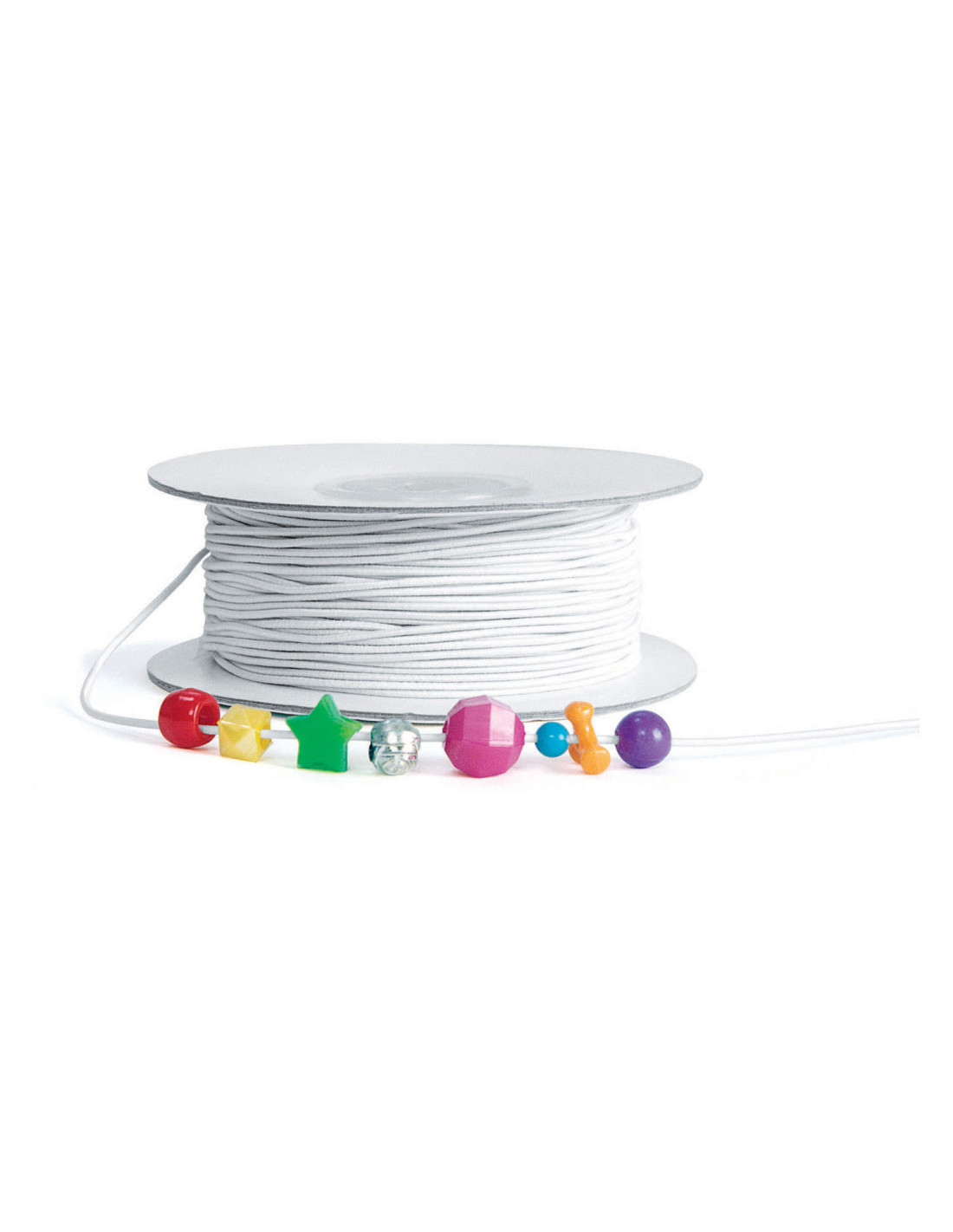 Dit rekbare, witte elastiek is 0,15 cm dik en geweldig voor het maken van kettingen en armbanden met allerlei soorten kralen. Het elastiek heeft een lengte van 91,5 meter.