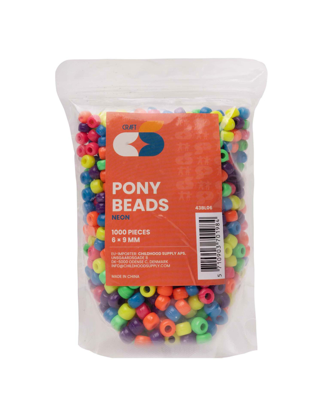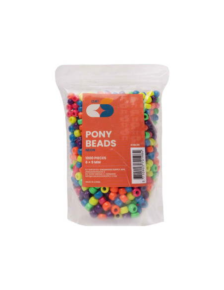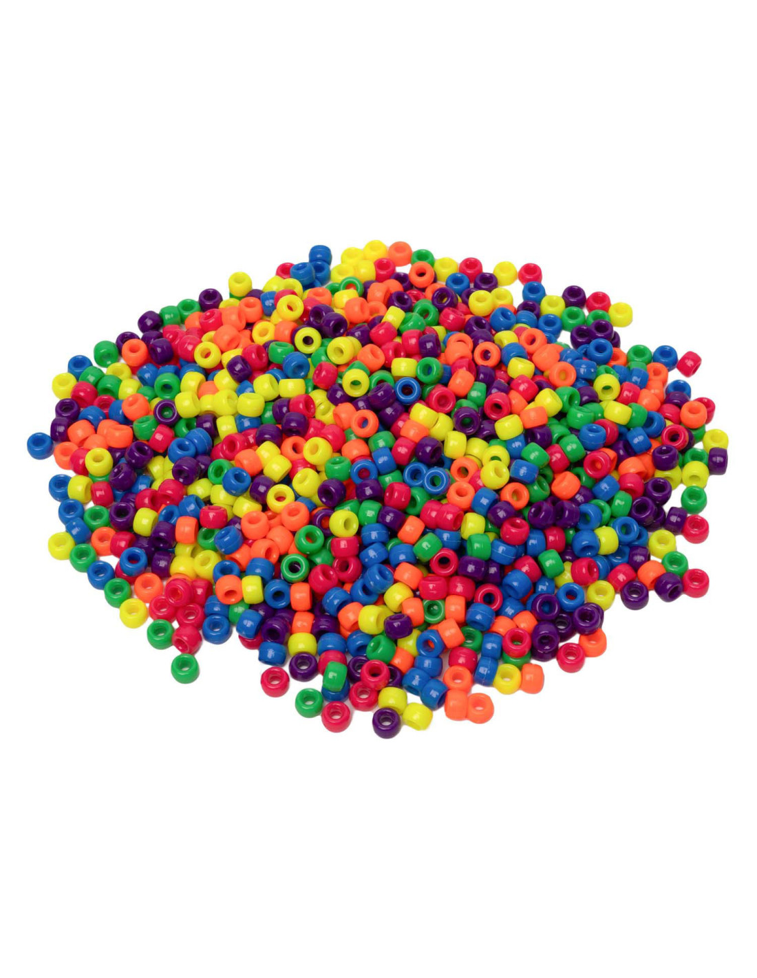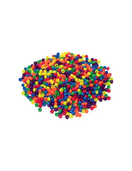 Set met ca. 1000 rijgkralen in neonkleuren. Afmetingen kralen: ca. 6 x 9 mm.