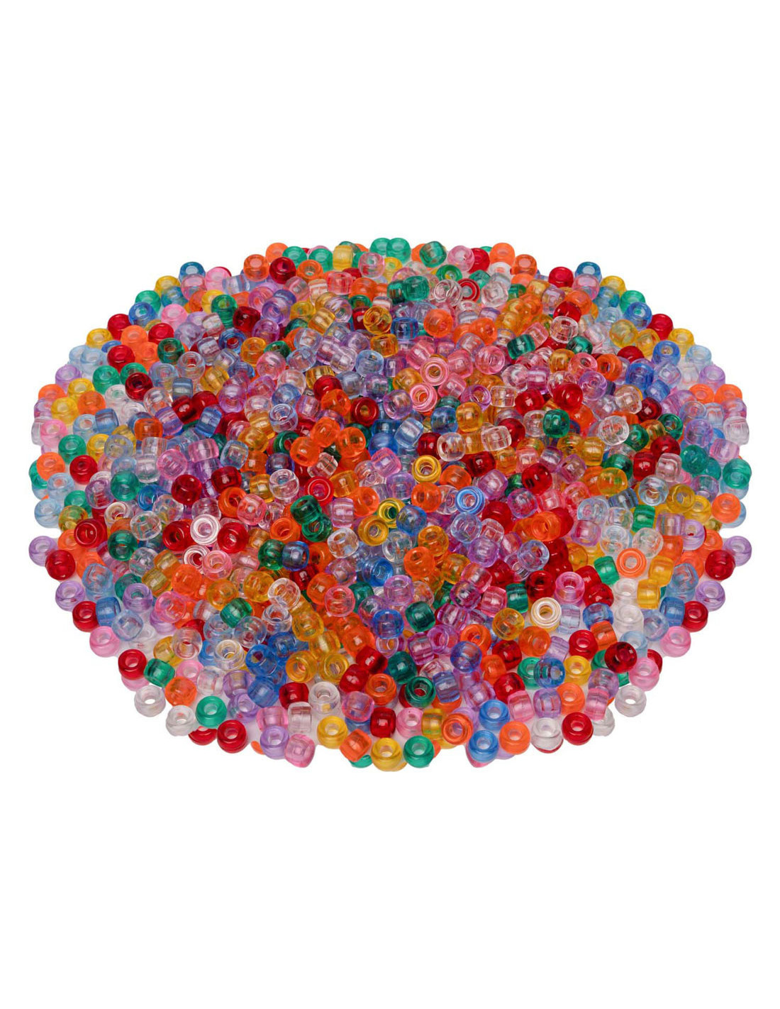 Set met ca. 1000 rijgkralen in transparante kleuren. Afmetingen kralen: ca. 6 x 9 mm.