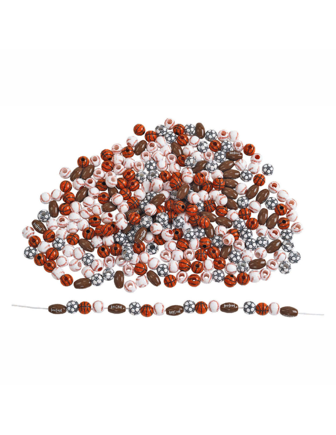 • WAT JE KRIJGT: Een zak van 227 g bevat ongeveer 300 plastic kralen. Ontwerpen zijn voorzien van honkballen, basketballen, voetballen en voetballen. De kralen hebben een diameter van 1 cm en een rijggat van 0,5 cm. Set wordt geleverd in een hersluitbare plastic zak voor eenvoudig opbergen/