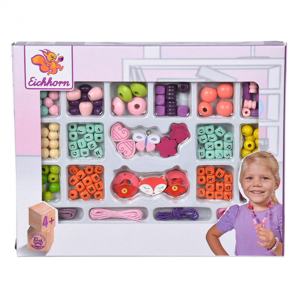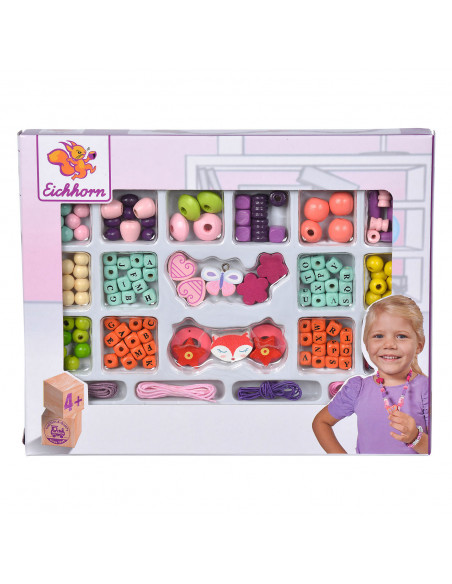 Maak de mooiste vriendschapsbandjes met de houten parels van Eichhorn. Laat je fantasie de vrije loop en creëer de tofste ontwerpen: er staan letters op elke parel, zo kan je een eigen touch aan elke ketting geven. De kleurrijke kralenset bestaat uit 190 onderdelen en is geschikt voor kinderen vanaf 4 jaar.