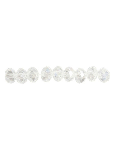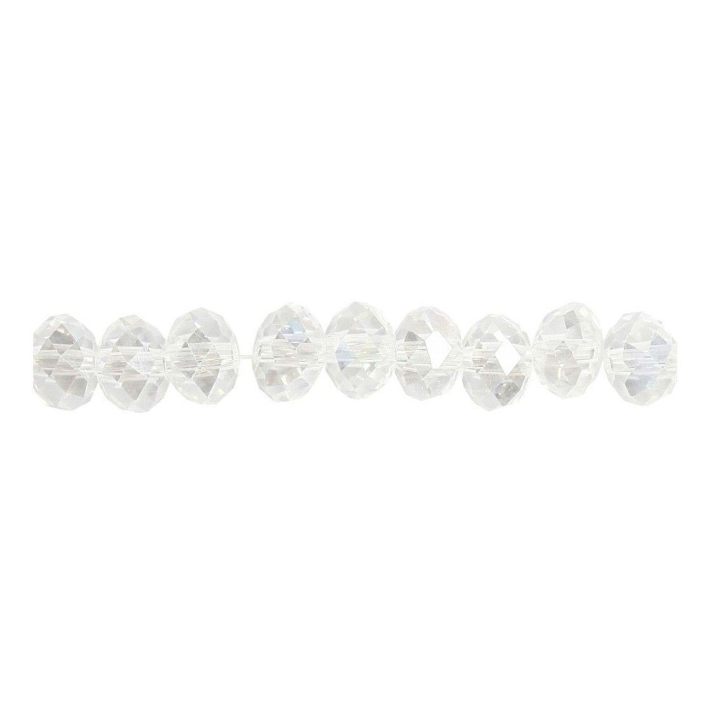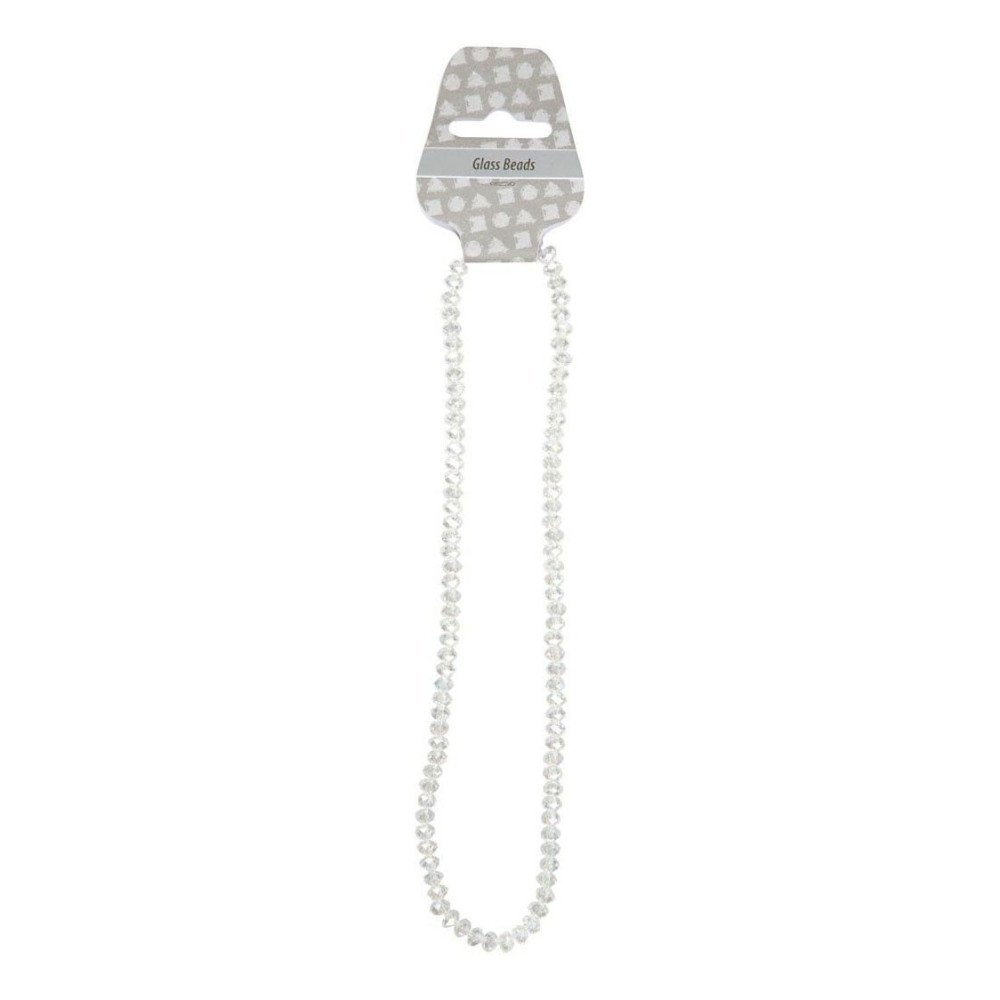 Platte, ronde facet kralen van kristalglas in heldere kleuren. Geregen op een streng