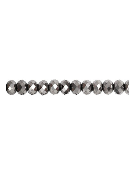 Platte, ronde facet kralen van kristalglas in heldere kleuren. Geregen op een streng