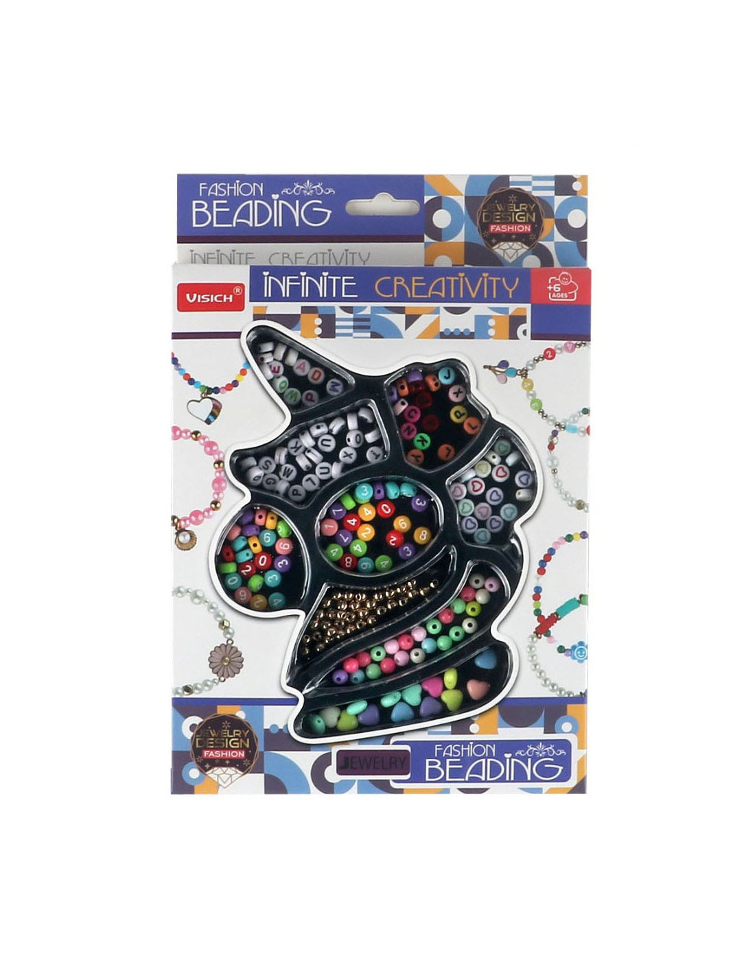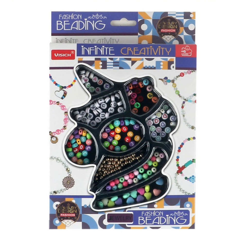 Met deze kralenset maak jij mooie kettingen en armbandjes. Er zitten verschillende kleuren, vormen en groottes kralen in de set en tevens letter- en cijferkralen. Geschikt voor kinderen vanaf 6 jaar oud.