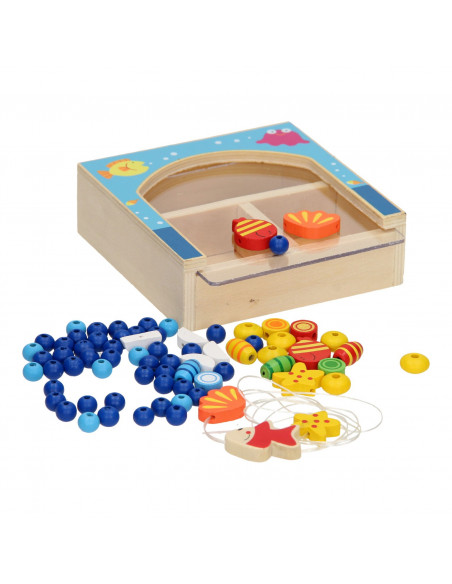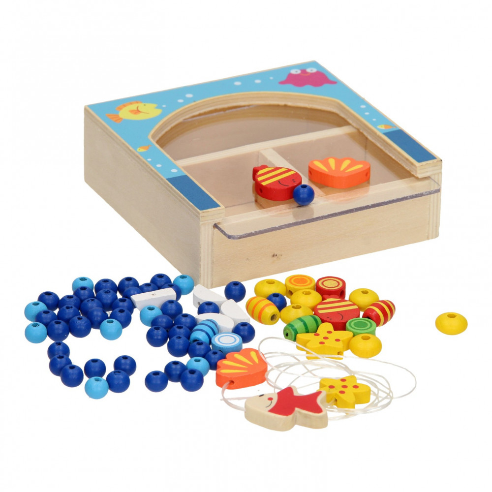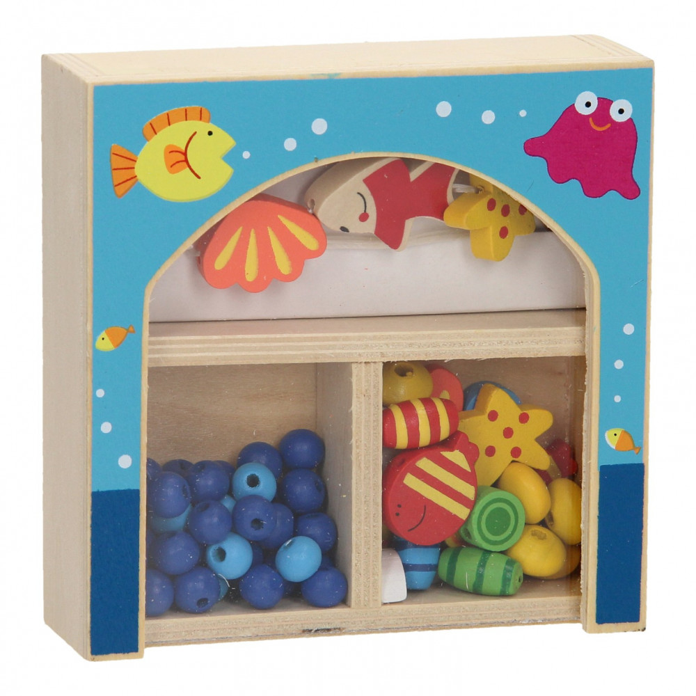 Het houten kralendoosje is kleurrijk bedrukt met een onderwaterwereld!