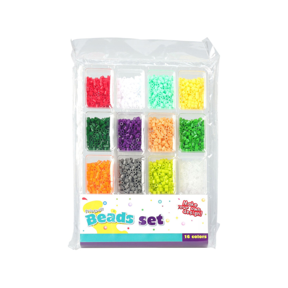 Kunststof opbergdoos met 16 verschillende soorten strijkkraaltjes (300 gram). Met o.a. de kleuren mintgroen, paars, bosgroen, rood, oranje en transparant. Niet geschikt voor kinderen jonger dan 3 jaar oud.