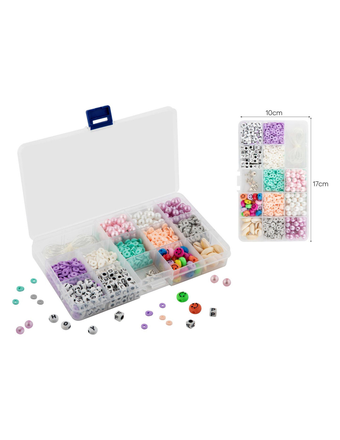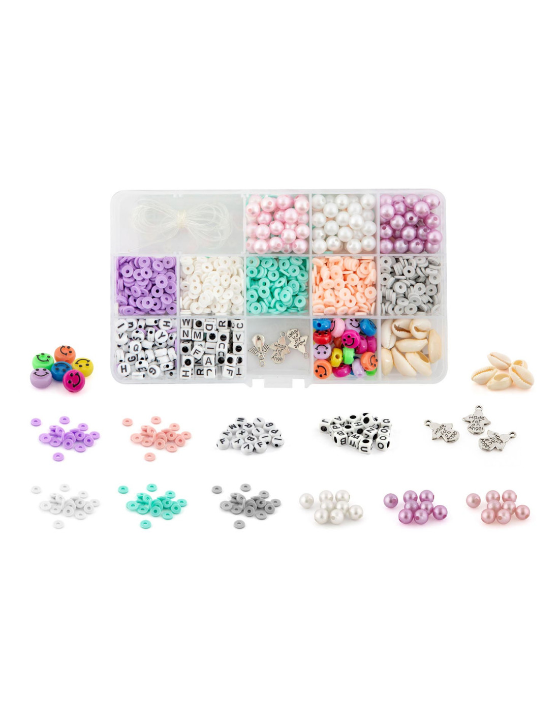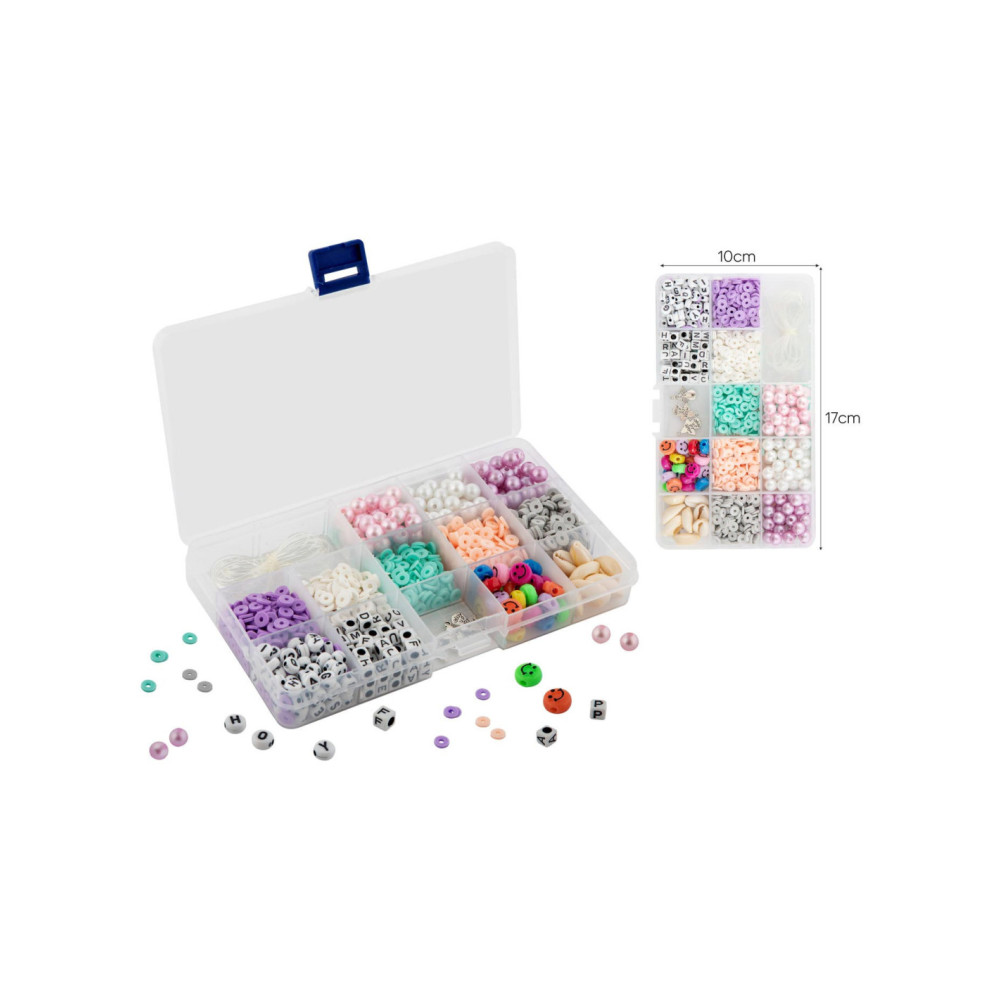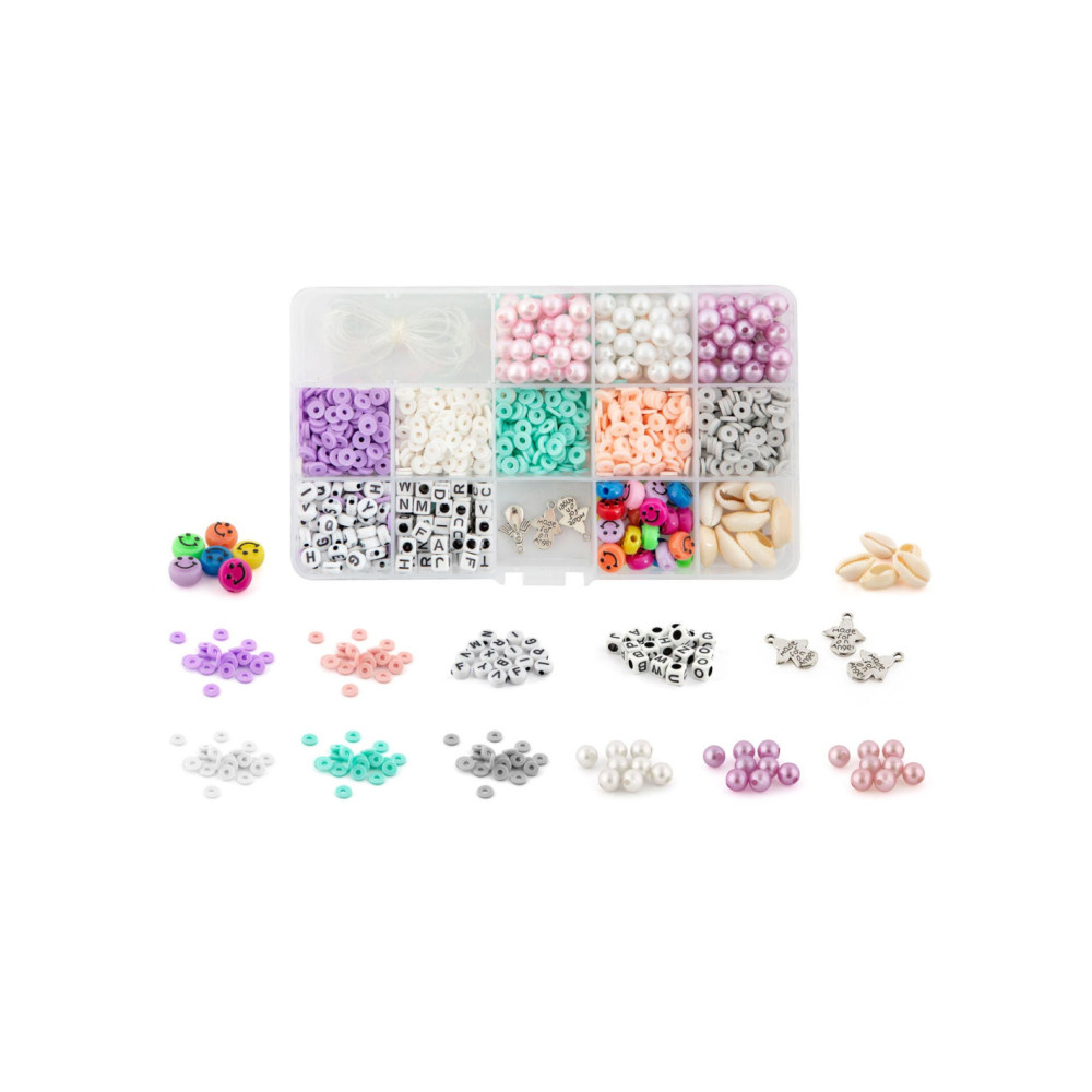 Kralendoos met 13 verschillende soorten kralen en rijgdraad. Totaal 178 gram. Geschikt voor kinderen en volwassenen, vanaf 6 jaar.