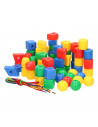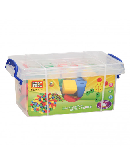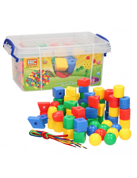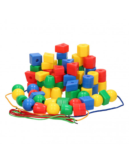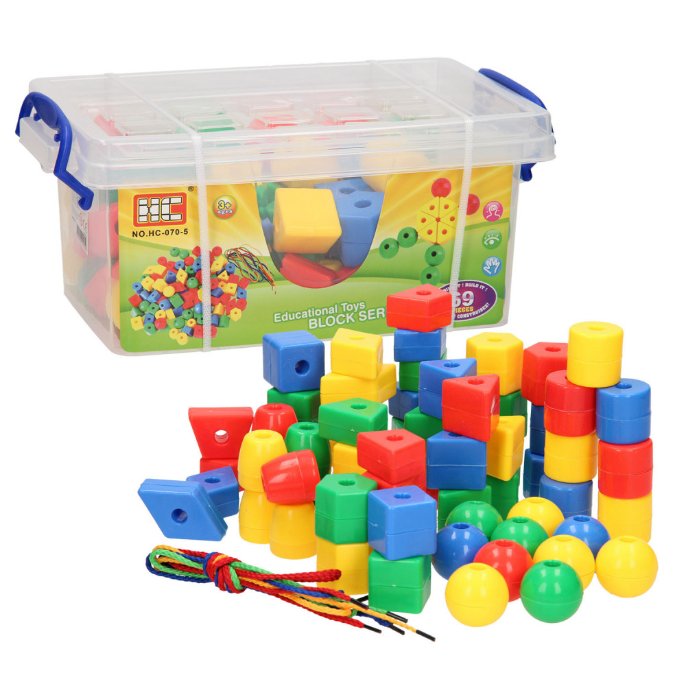 Met deze 69-delige kralenset kun je jouw eerste ketting of figuur maken. De kralen zitten in een kunststof bak en is inclusief rijgdraad en voorbeelden. Door het rijgen van kralen wordt de fijne motoriek en het concentratievermogen gestimuleerd. Ook leren kinderen kleuren en vormen herkennen. Geschikt vanaf 3 jaar.
