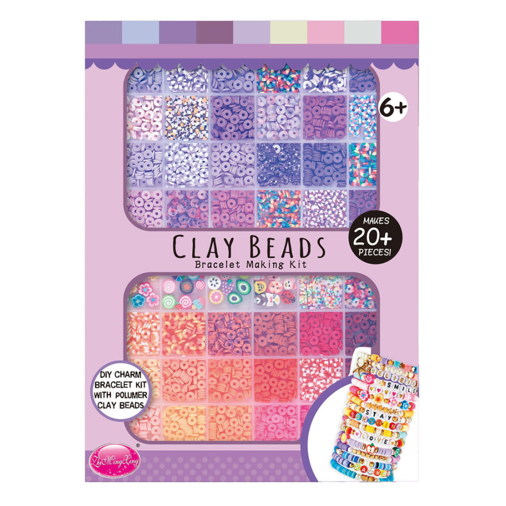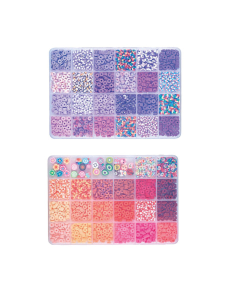 Set met 2 kunststof opbergers met daarin 48 verschillende soorten polymeerkralen. De kralen hebben paars/roze/rode tinten. Inclusief 4 soorten vormenkralen. Afmetingen: 23,6 x 3,4 x 32,6 centimeter. Geschikt voor kinderen en volwassenen, vanaf 6 jaar.