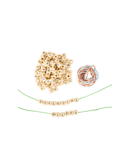 Het rijgplezier kan beginnen! Deze 300 houten letterdobbelstenen kunnen elke wens vervullen. Je kunt prachtige naamarmbandjes maken die je cadeau kunt doen of zelf kunt dragen. De kleurrijke touwtjes zijn echte eyecatchers. Met deze natuurlijk afgewerkte letterdobbelstenen kun je woorden en zinnen maken die je als ketting of armband kunt dragen. Ze zijn ook een geweldig cadeau-idee voor decoratie. Hier kan iedereen zijn creativiteit de vrije loop laten!