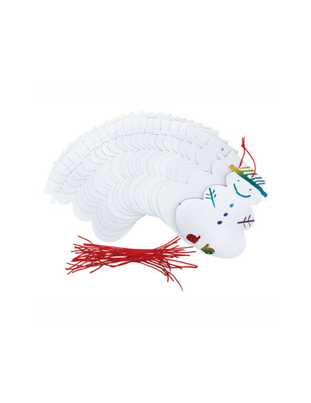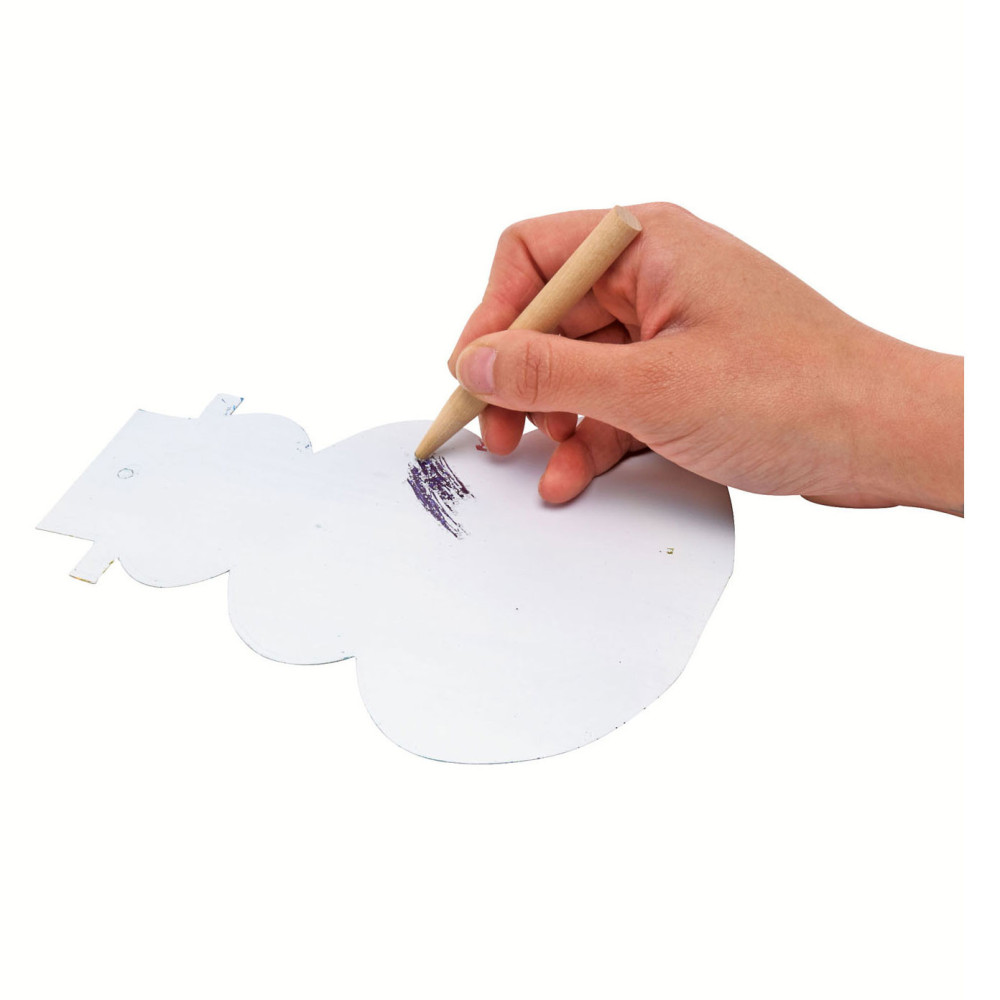 • WAT JE KRIJGT: Set van 20 sneeuwpoppen. Elke pop is 18 cm H x 15 cm B. Wit, gemakkelijk te krabben oppervlak met daarachter glitterende regenboogkleuren. Elke houten stok kan worden gebruikt om kunstwerken te maken.