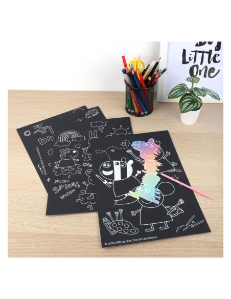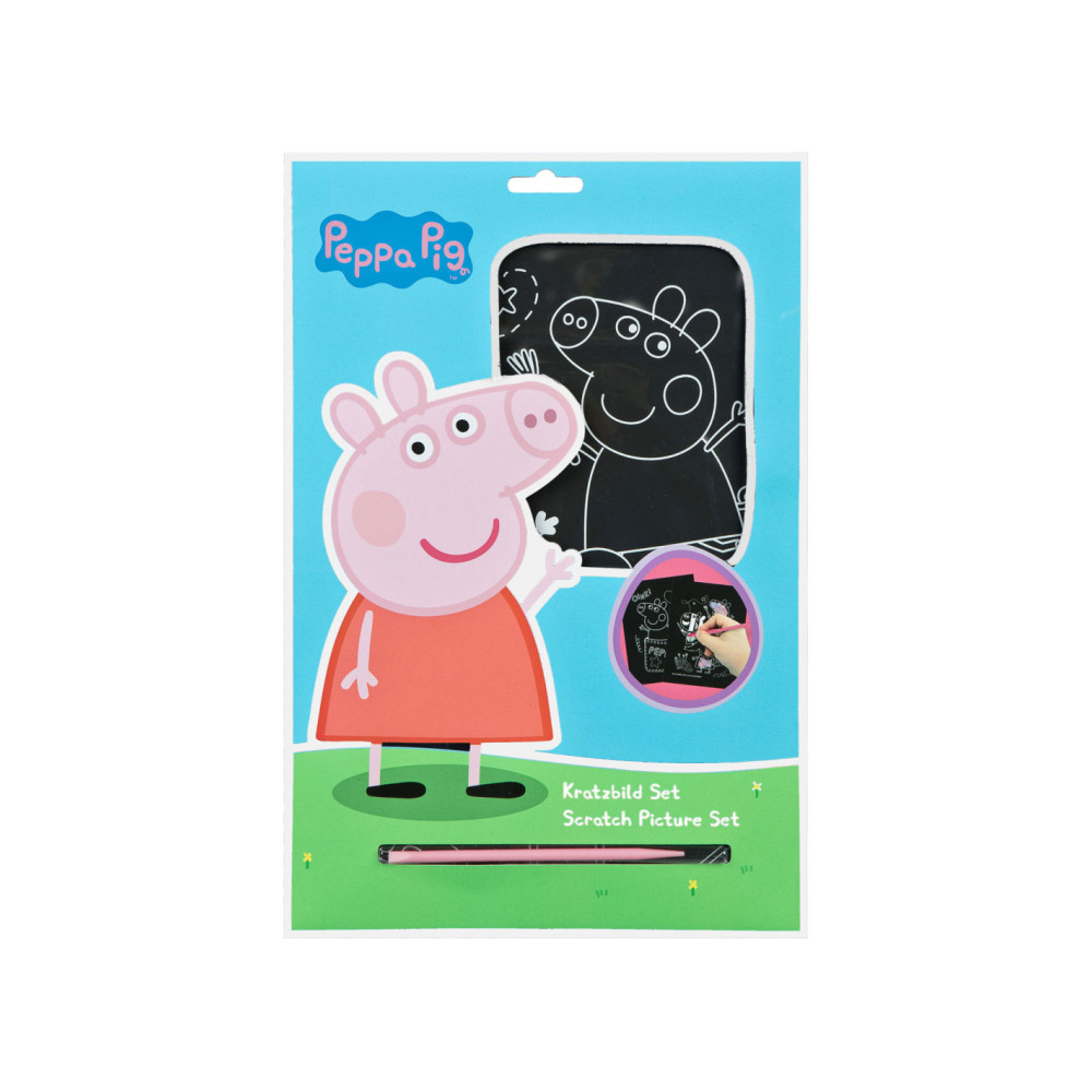 Set van 4 Peppa Pig krasplaatjes, inclusief kraspen Geschikt vanaf 3 jaar.